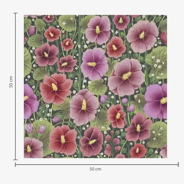 Papel pintado Grandes flores y hojas de hibisco sobre un fondo verde oscuro. Nr. a00993