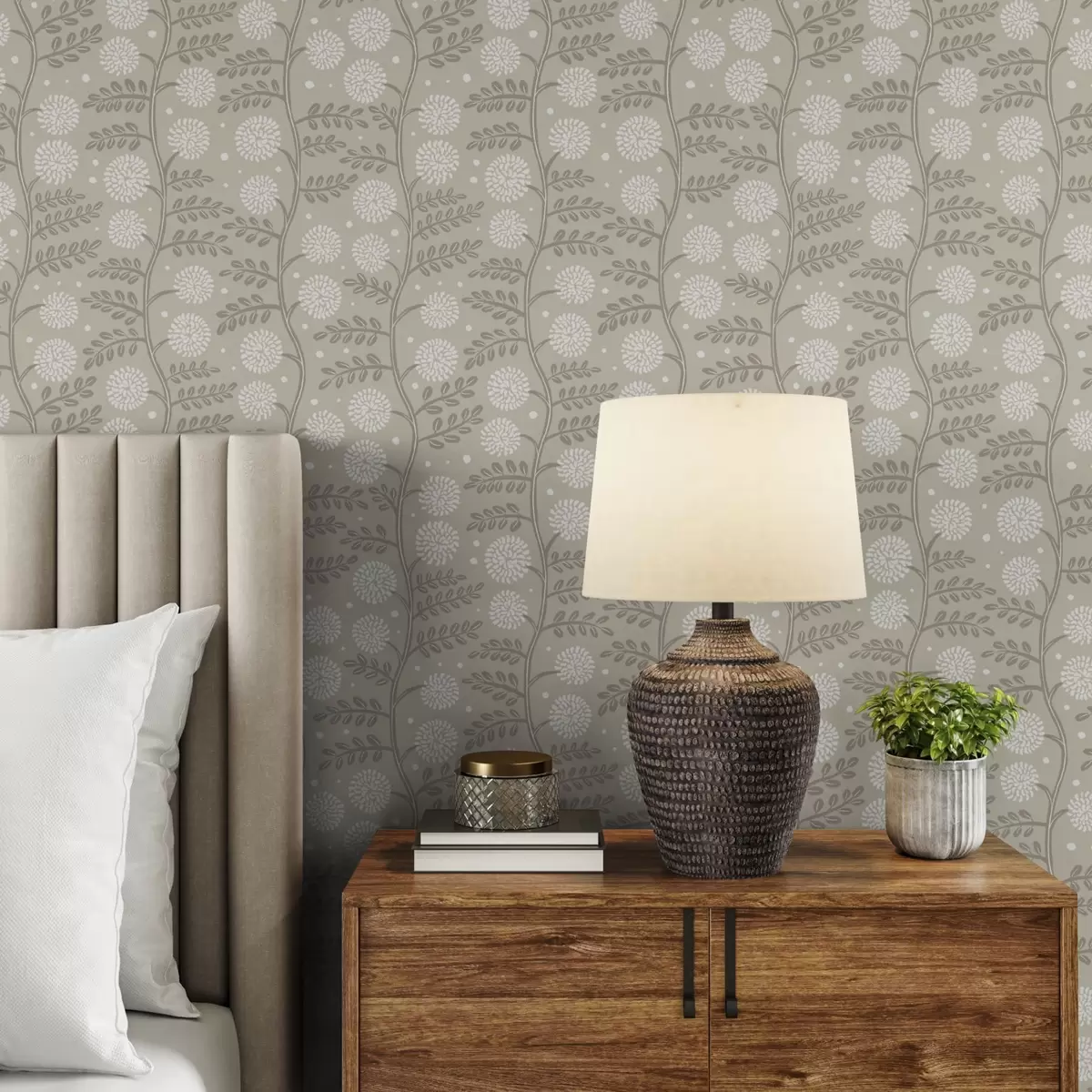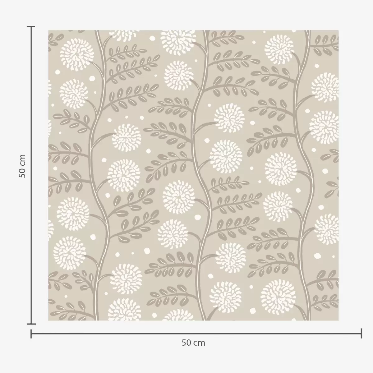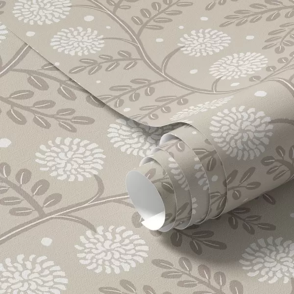 Papel pintado Tallos de color beige con flores blancas esponjosas y suaves puntos. Nr. a00997