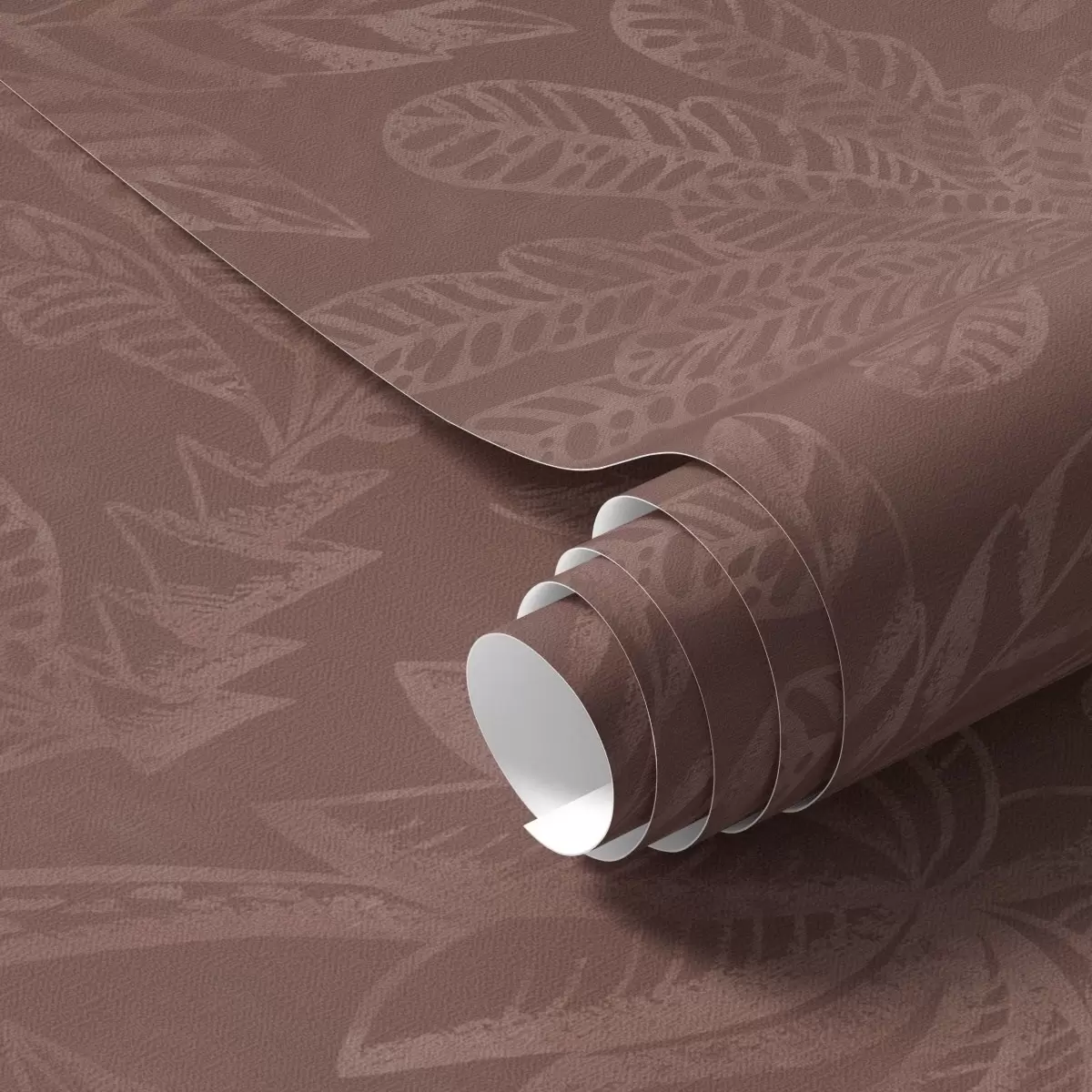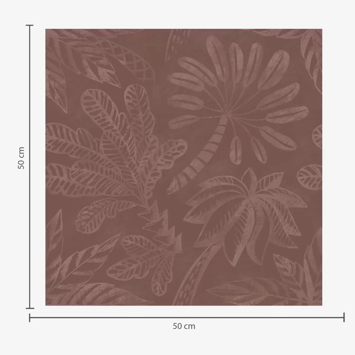 Papel pintado Hojas tropicales texturizadas en tonos terracota rojo intenso. Nr. a01001v2