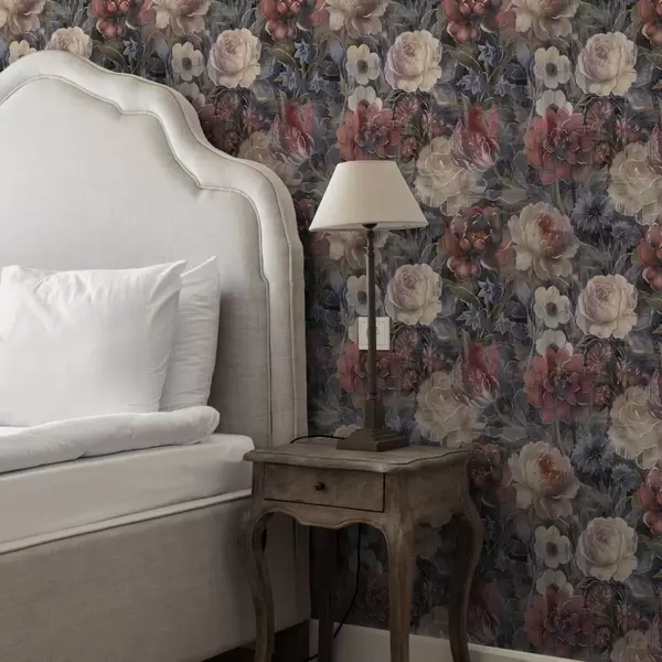 Papel pintado Ramo pictórico de flores grandes sobre fondo índigo intenso Nr. a01021
