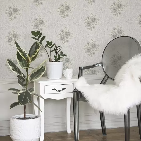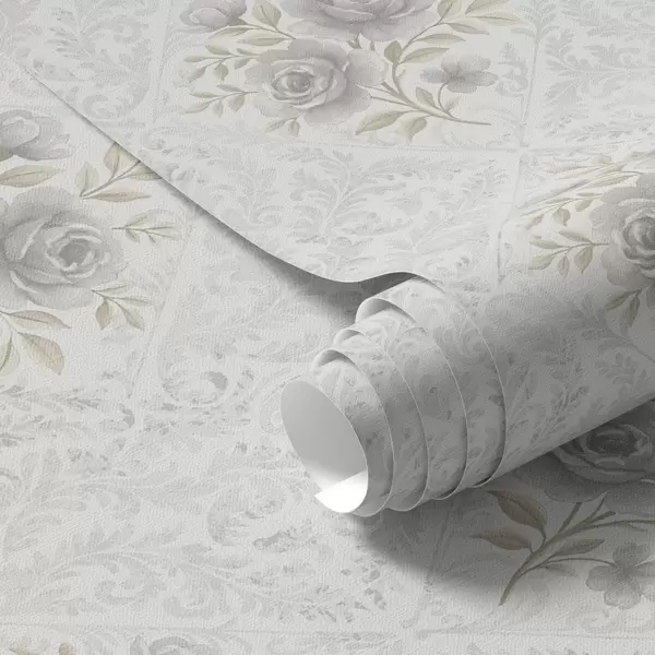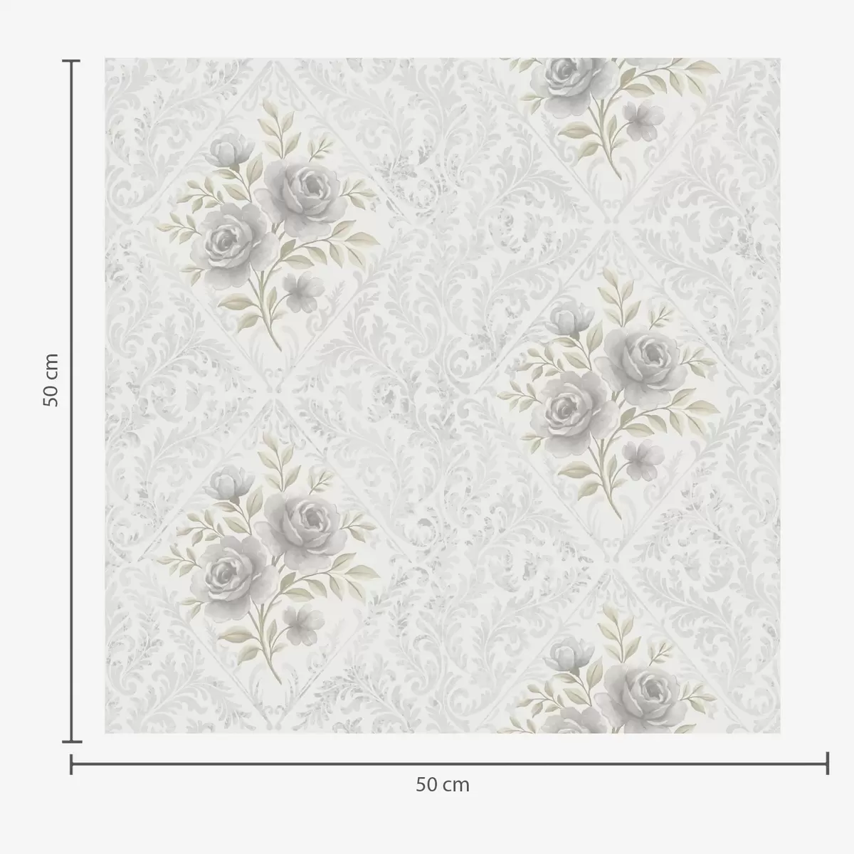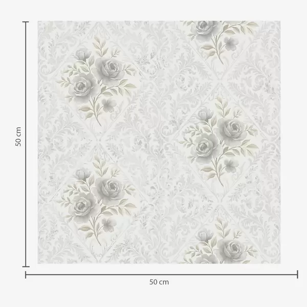 Papel pintado Diseño damasco claro con rosas grises en rombos suaves Nr. a01024