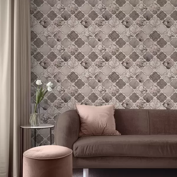 Papel pintado Romántico mosaico de medallones florales en tonos apagados. Nr. a01027