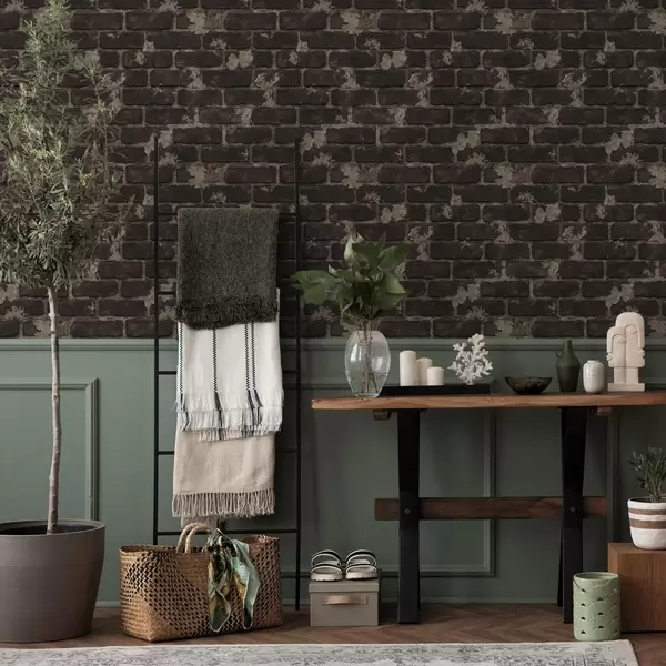 Papel pintado Muro antiguo de ladrillo oscuro con zonas desgastadas Nr. a01030