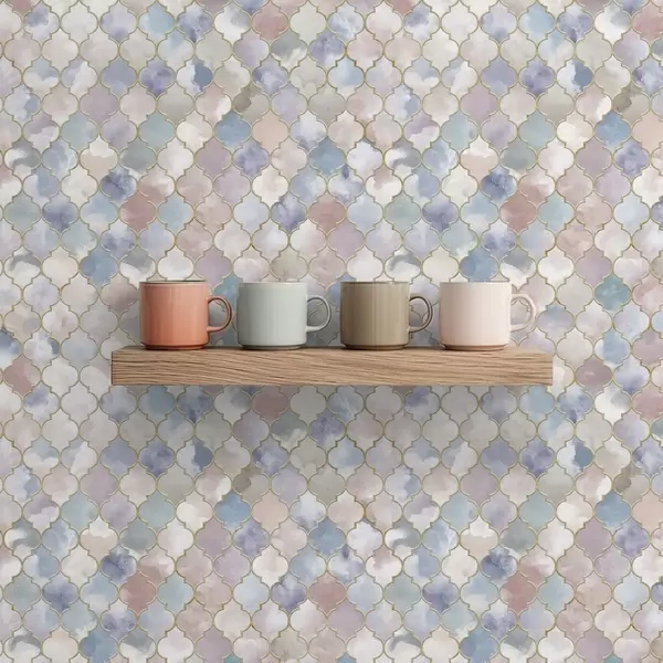 Papel pintado Mosaico en tonos pastel de fragmentos marroquíes con un suave resplandor. Nr. a01039