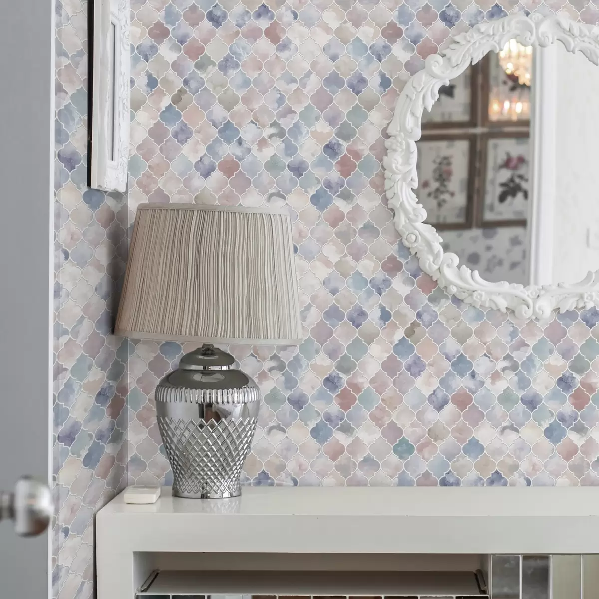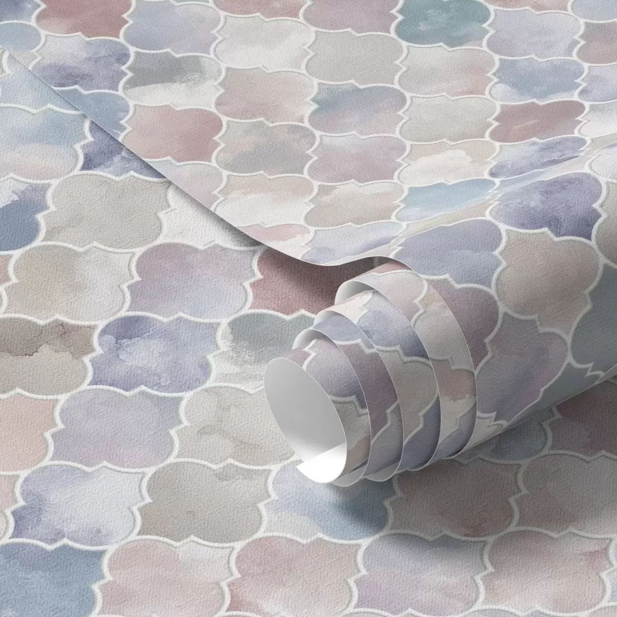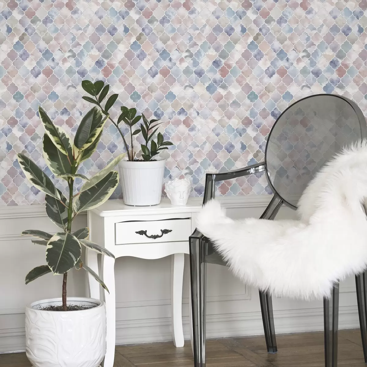 Papel pintado Mosaico en tonos pastel claros con suaves formas marroquíes. Nr. a01039v1
