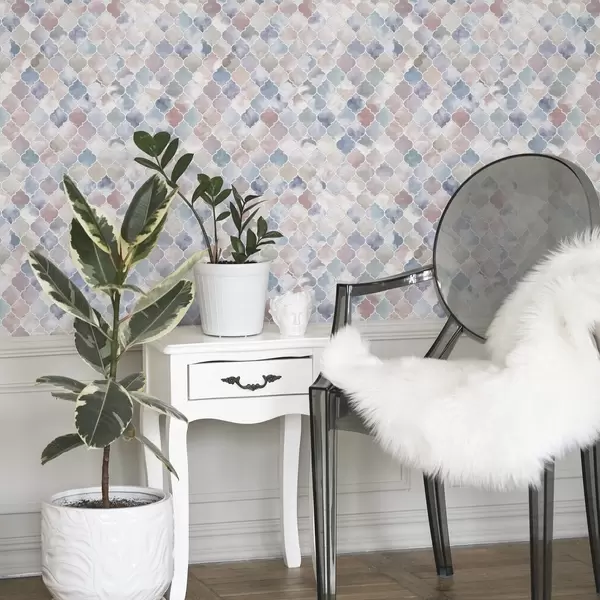 Papel pintado Mosaico en tonos pastel claros con suaves formas marroquíes Nr. a01039v1