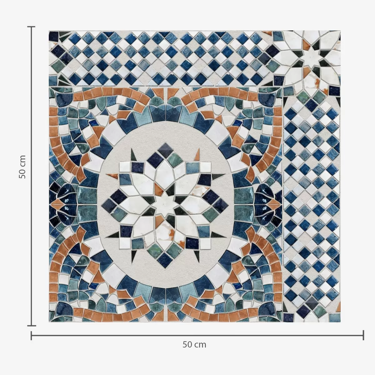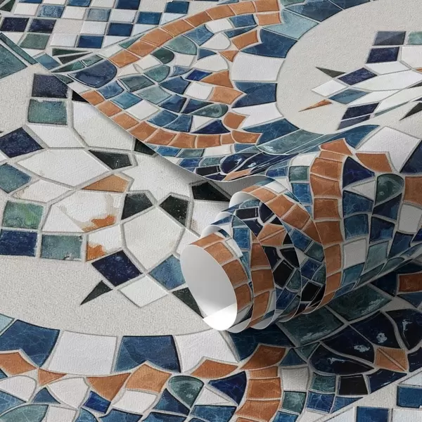 Papel pintado Mosaico marroquí brillante en tonos azul turquesa. Nr. a01043