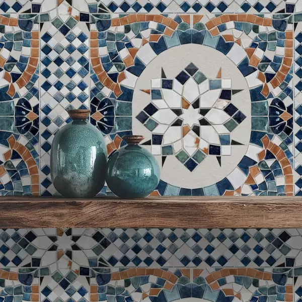Papel pintado Mosaico marroquí brillante en tonos azul turquesa. Nr. a01043