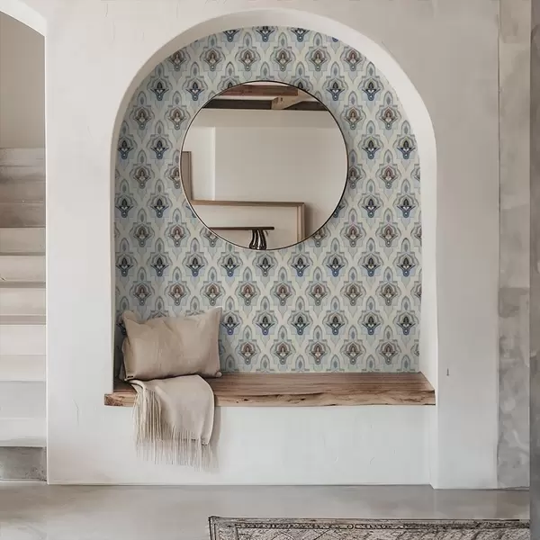 Papel pintado Patrón oriental de azulejos pequeños en una paleta de colores azul y arena Nr. a01044