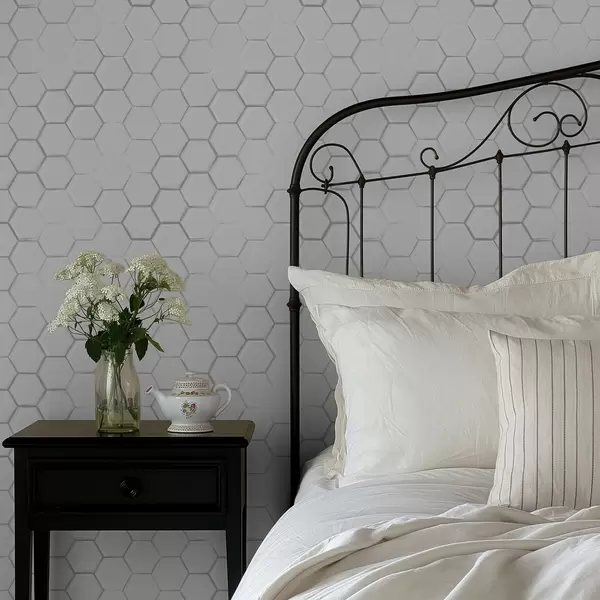 Papel pintado Hexágonos tridimensionales blancos sobre un fondo liso Nr. a01059