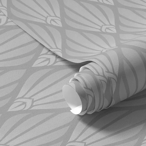 Papel pintado Art Déco gris con formas en forma de abanico Nr. a01064
