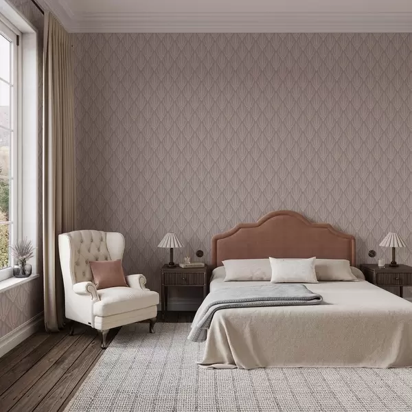 Papel pintado Beige empolvado Art Déco con suaves abanicos Nr. a01064v1