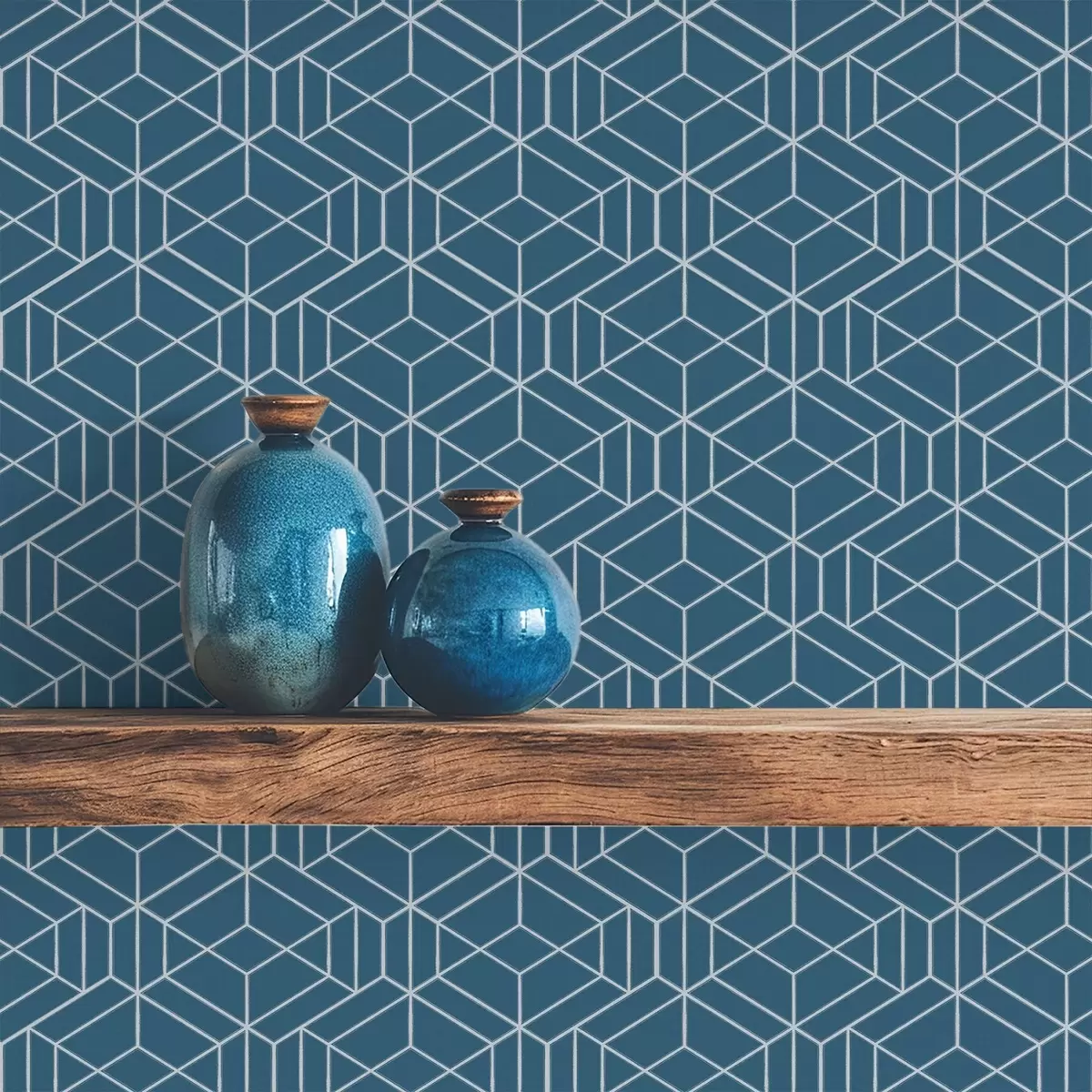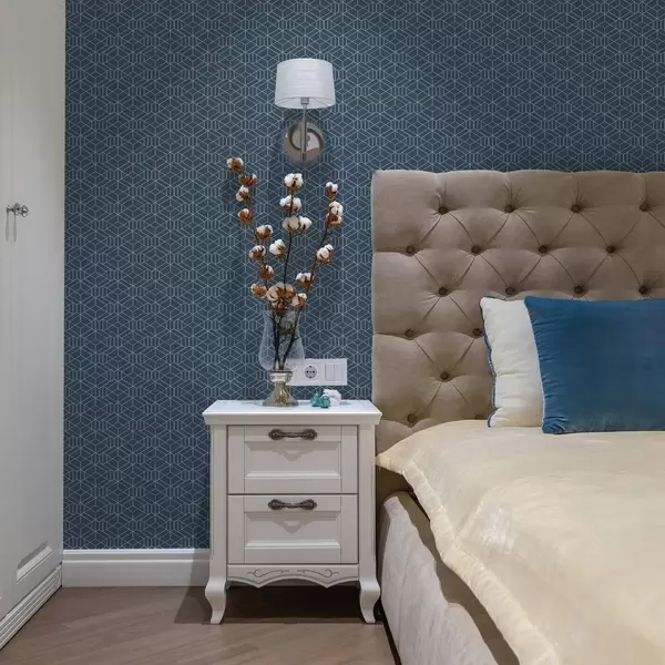 Papel pintado Fondo azul con cubos lineales blancos en una cuadrícula Nr. a01067v1