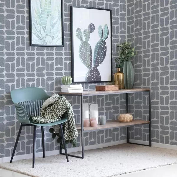 Papel pintado Mosaico gris alternando formas redondeadas y rectangulares Nr. a01069