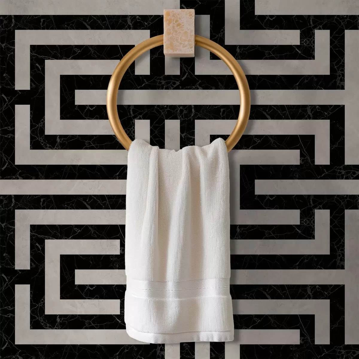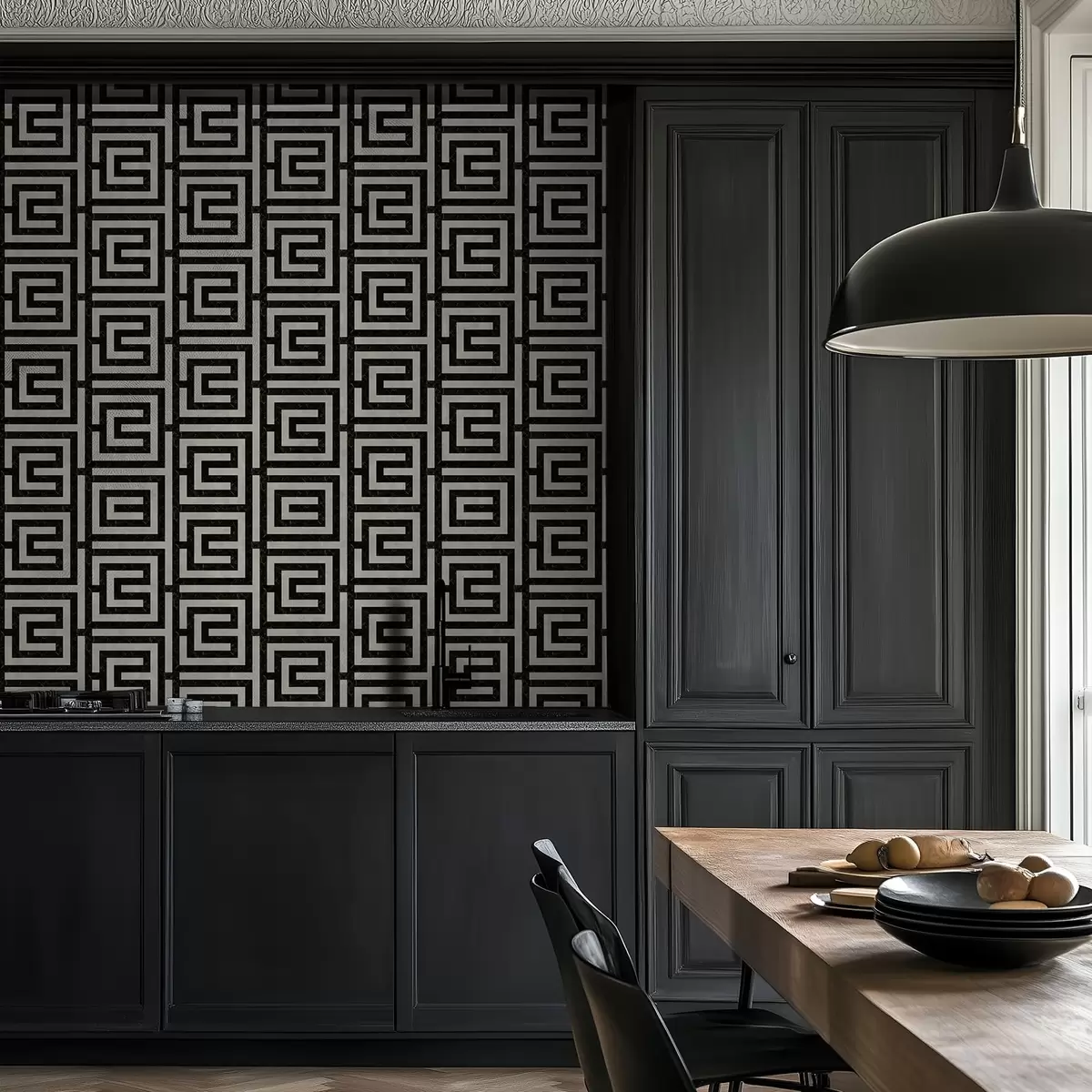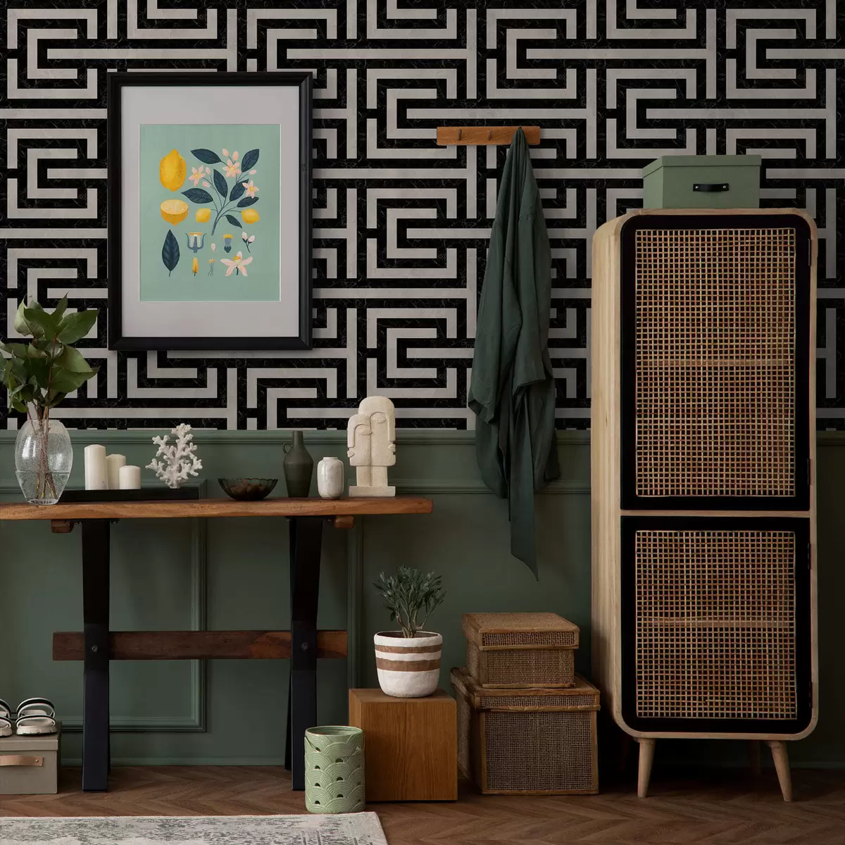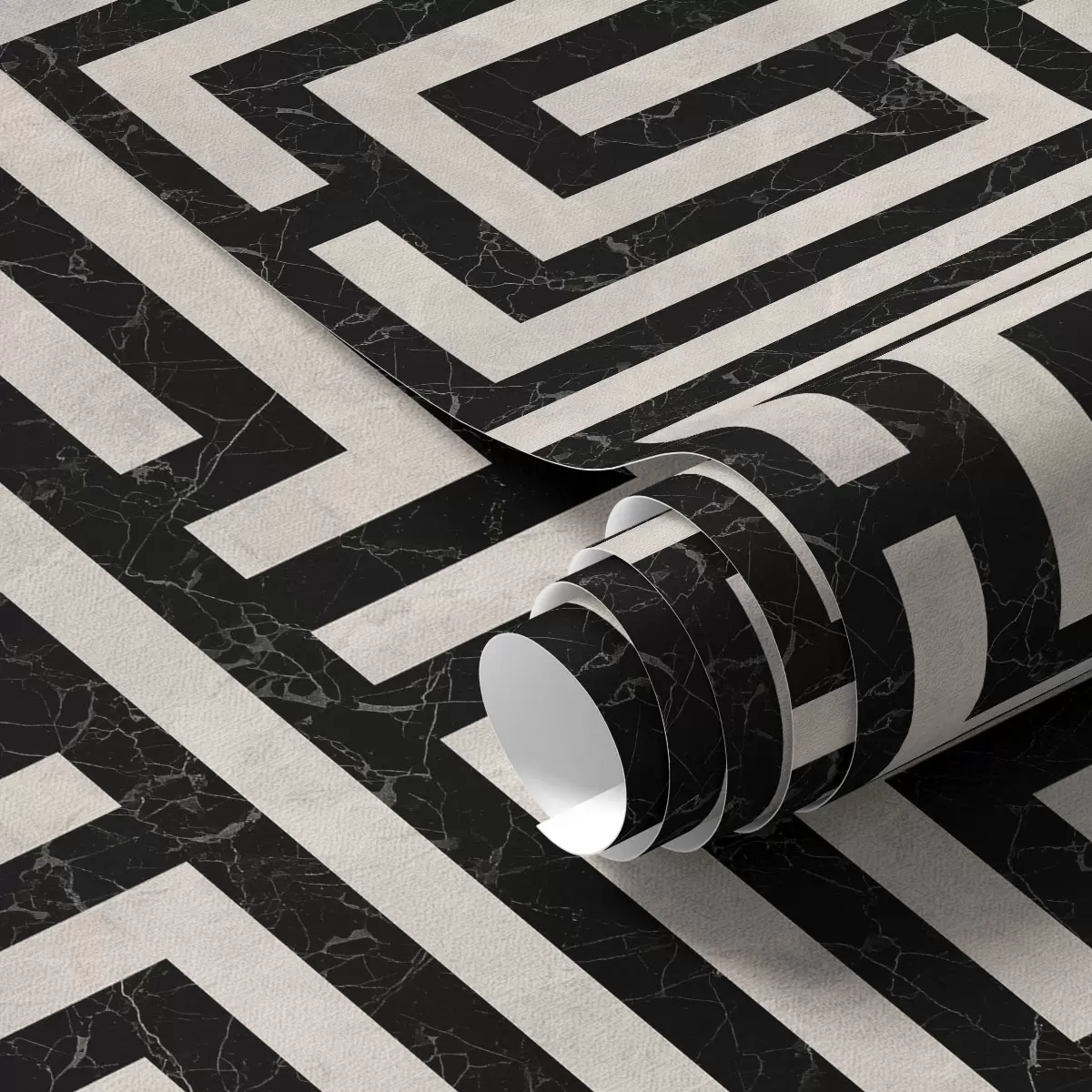 Papel pintado Patrón geométrico en blanco y negro con forma de laberinto Nr. a01073
