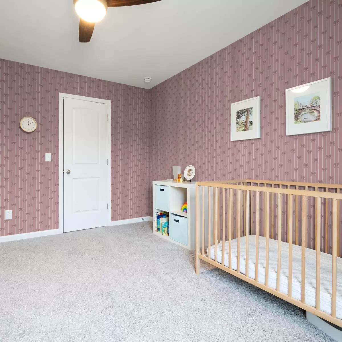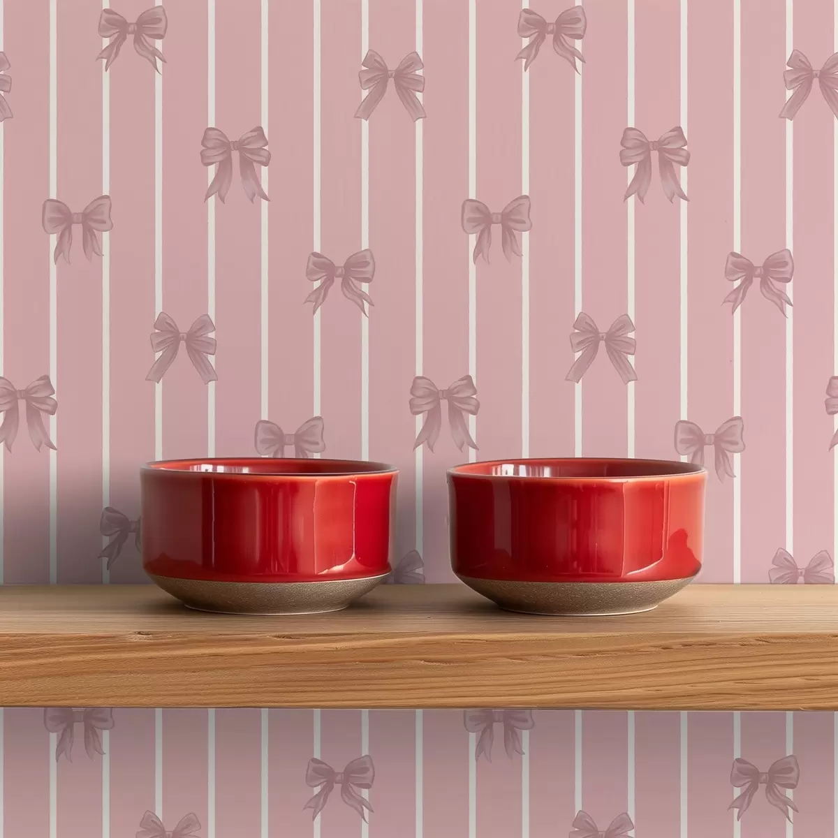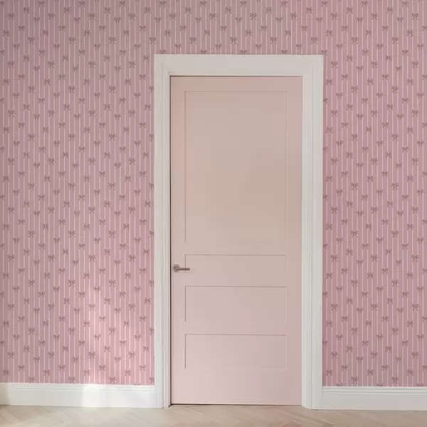 Papel pintado Pequeños lazos rosas sobre un fondo a rayas rosas Nr. a01076v1