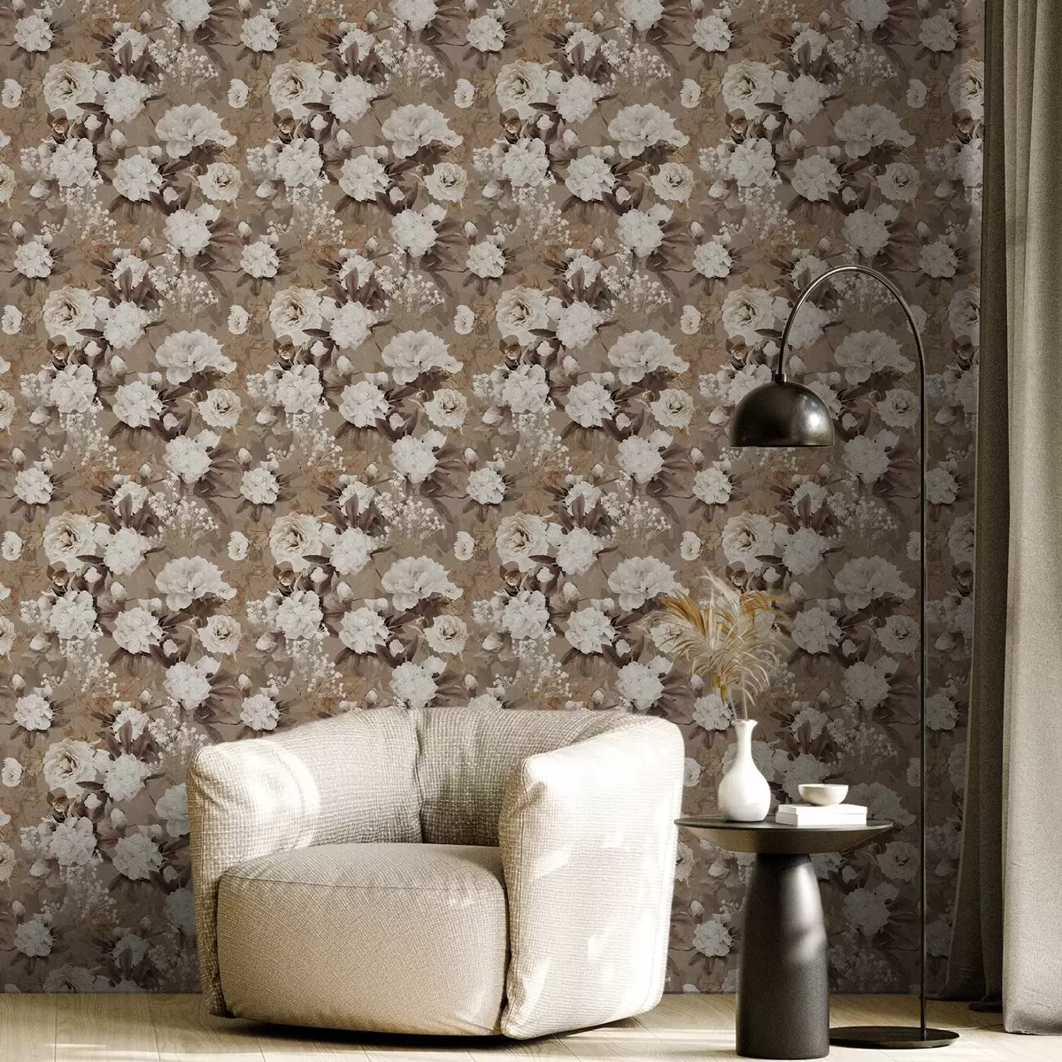 Papel pintado Peonías beige cálidas sobre un fondo texturizado Nr. a01087