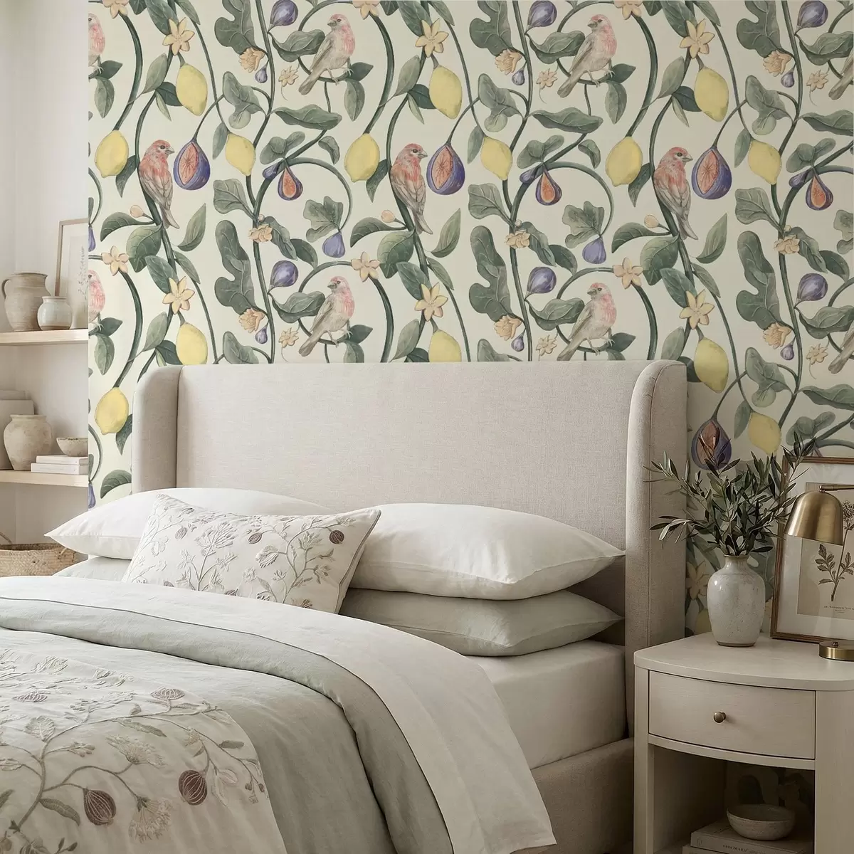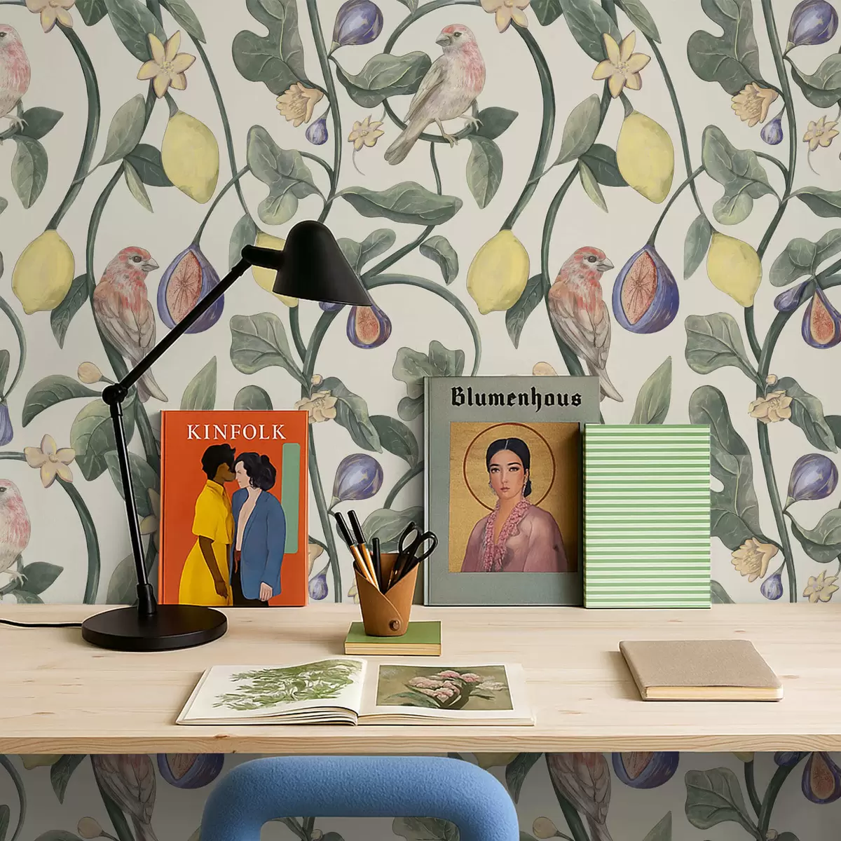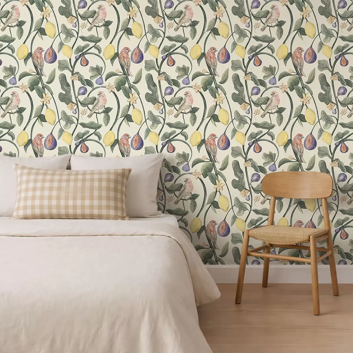 Papel pintado Pájaros entre hojas y frutos Nr. a01107