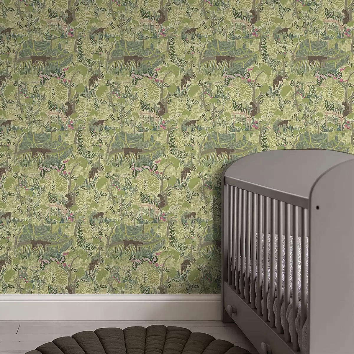 Papel pintado Escena forestal con animales y follaje denso Nr. a01108