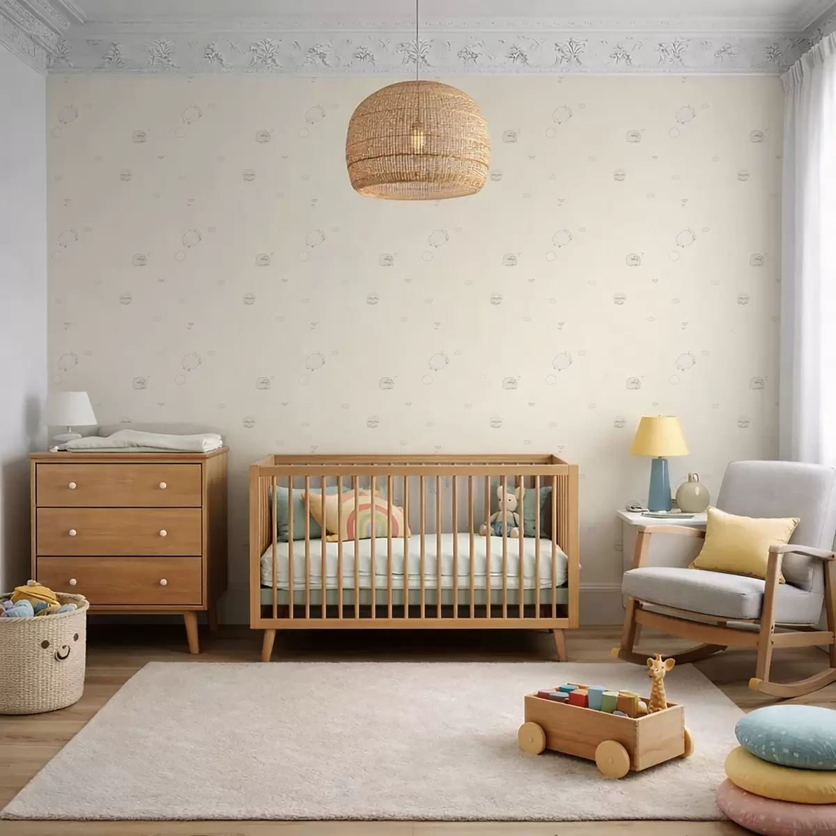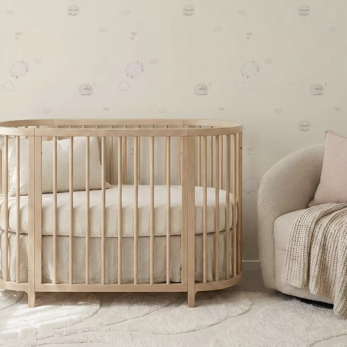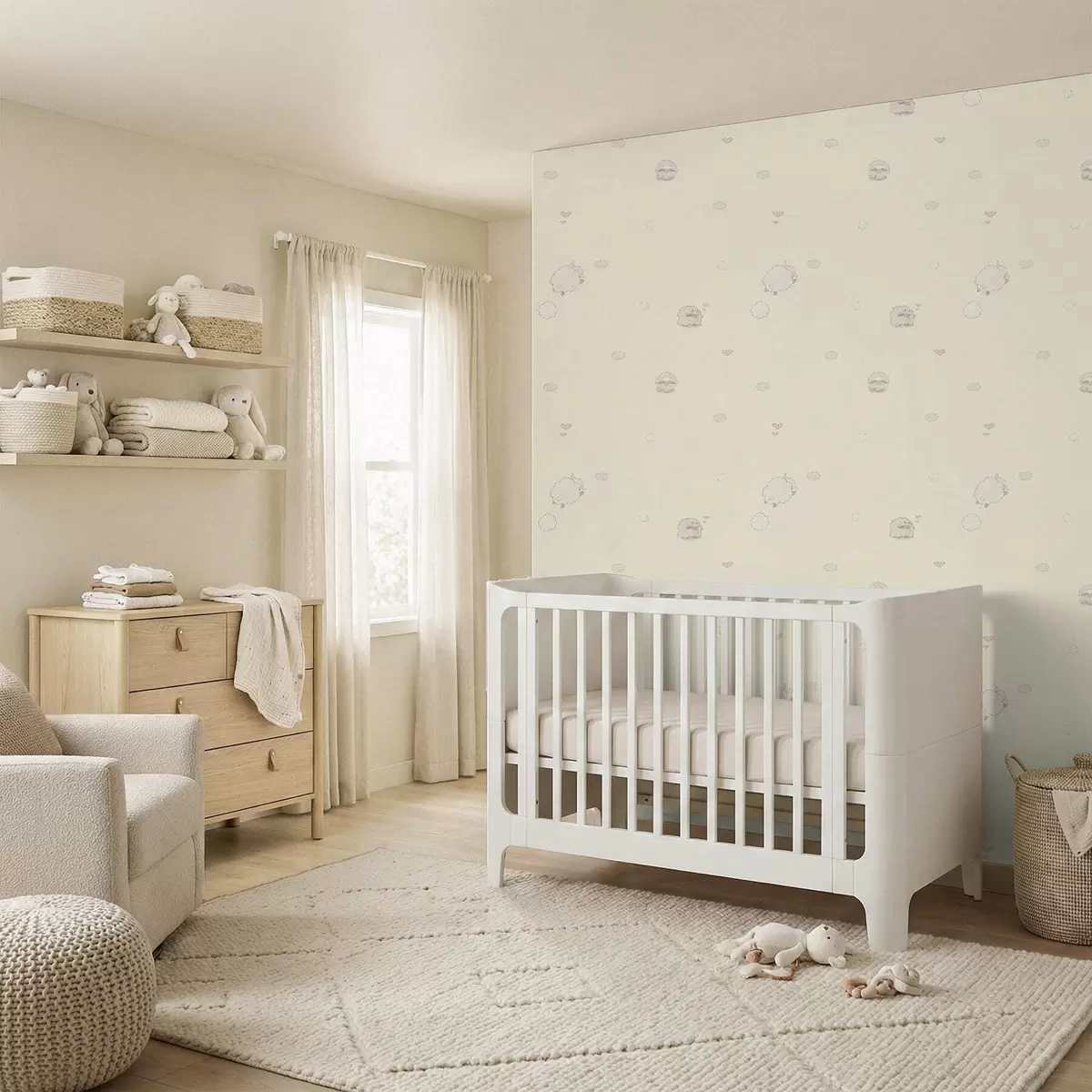 Papel pintado Bonito estampado con ovejas y pequeños corazones. Nr. a01109