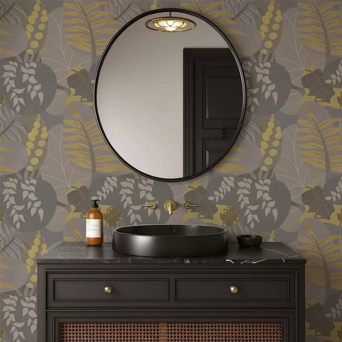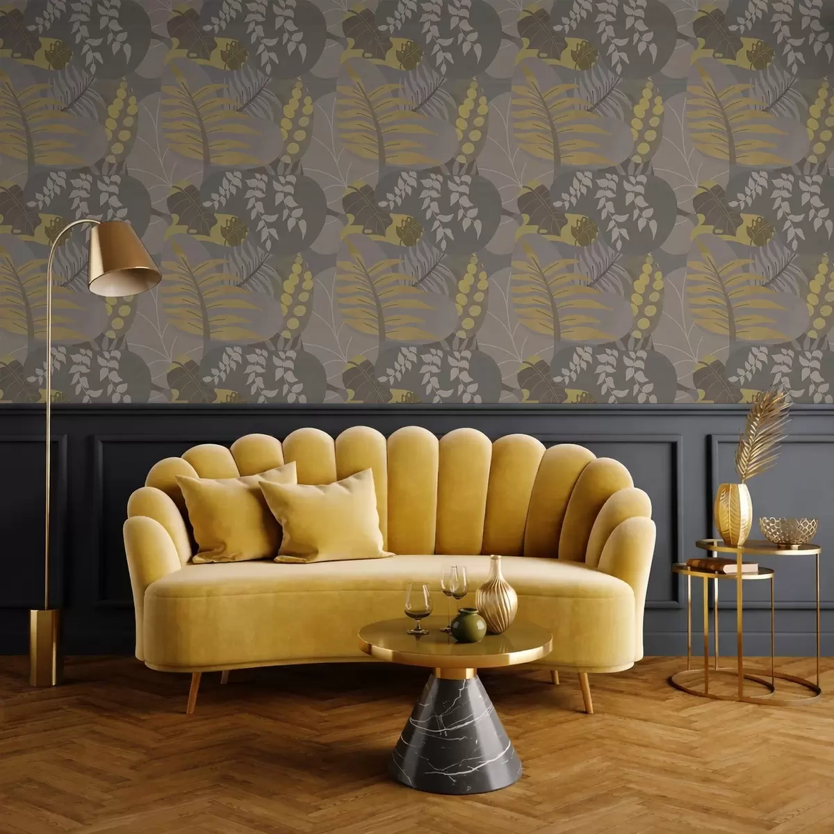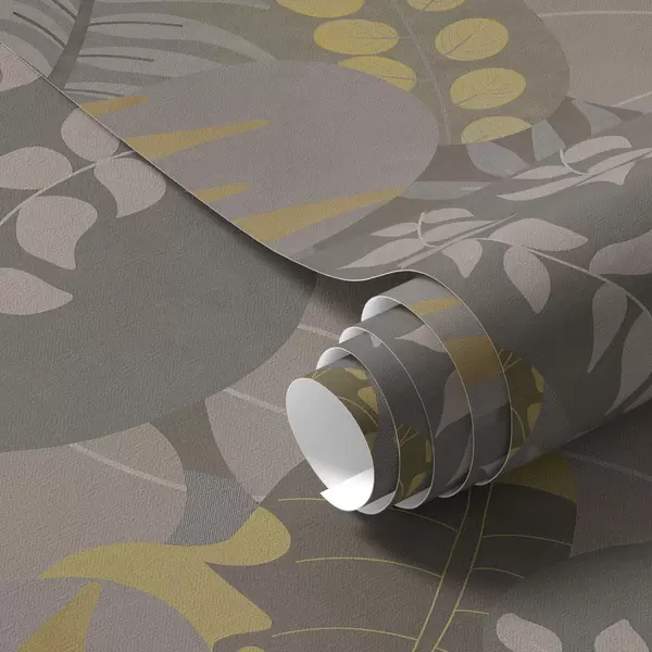 Papel pintado Hojas abstractas en tonos grises y amarillos Nr. a01112
