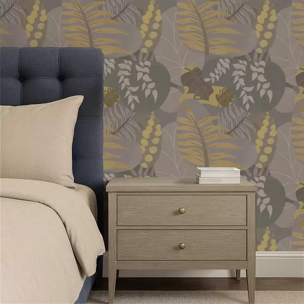 Papel pintado Hojas abstractas en tonos grises y amarillos Nr. a01112