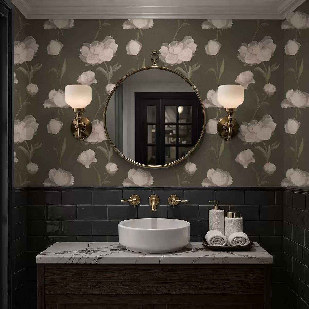 Papel pintado Peonías de color rosa suave sobre fondo oscuro Nr. a01114v1