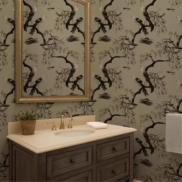 Papel pintado Pájaros en una rama en tonos monocromáticos Nr. a01116v2