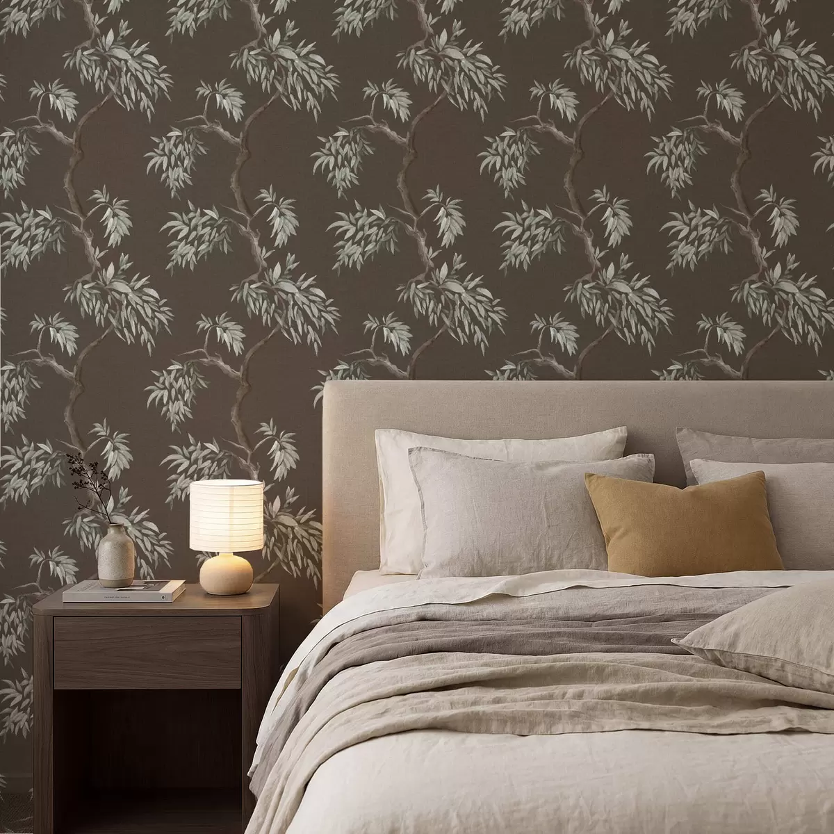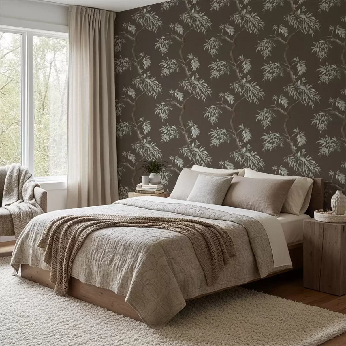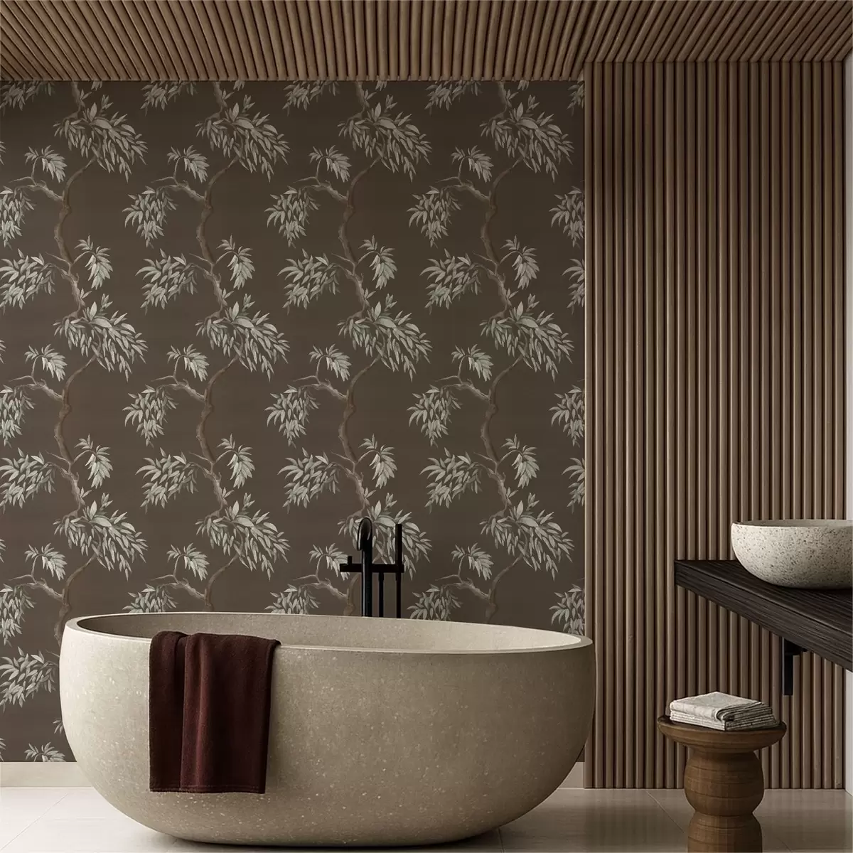 Papel pintado Rama de árbol con hojas sobre fondo marrón Nr. a01117v3
