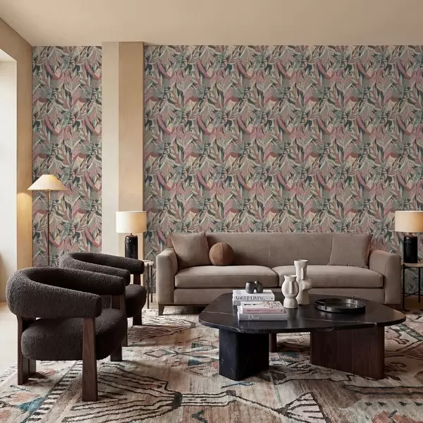 Papel pintado Hojas con motivos coloridos sobre fondo oscuro Nr. a01120