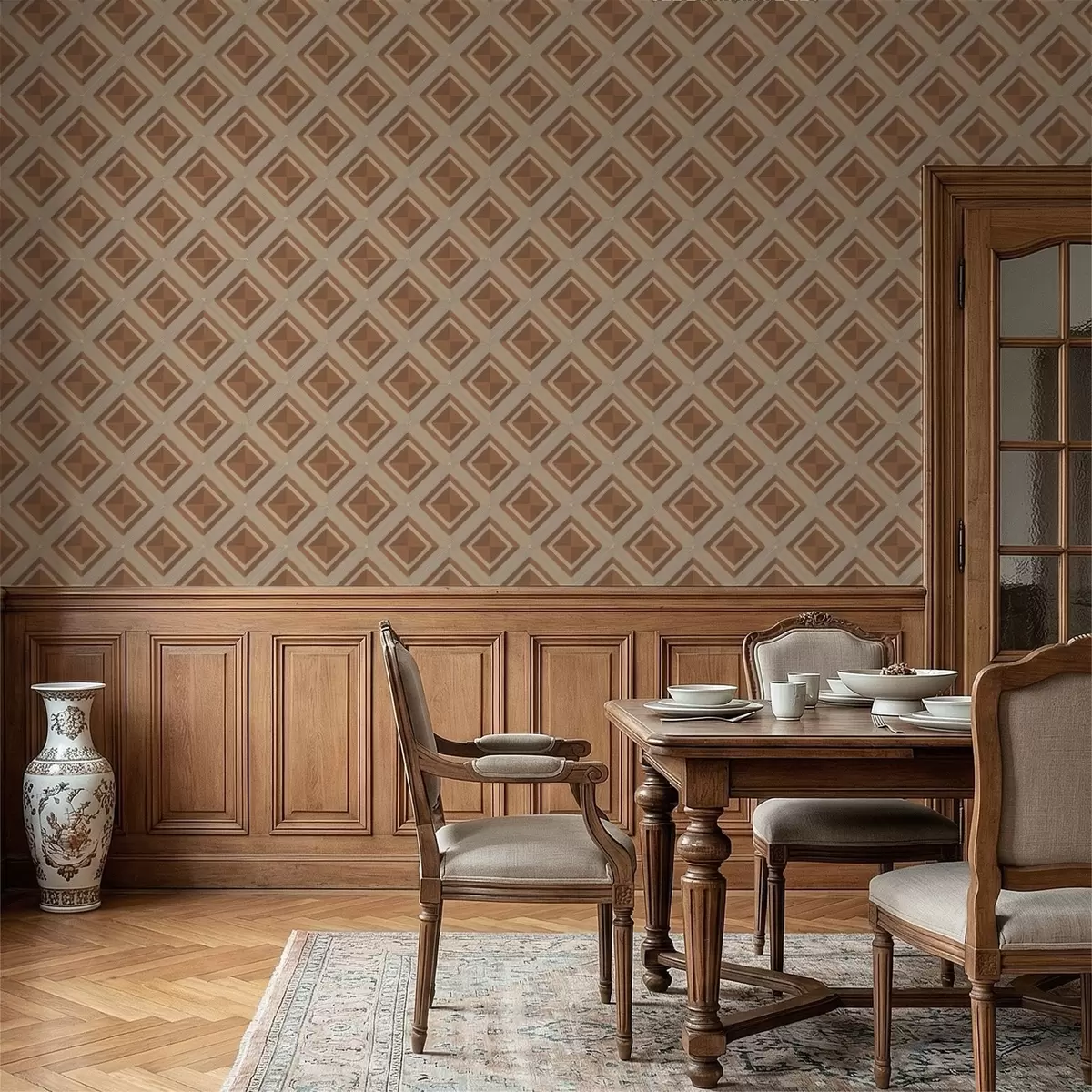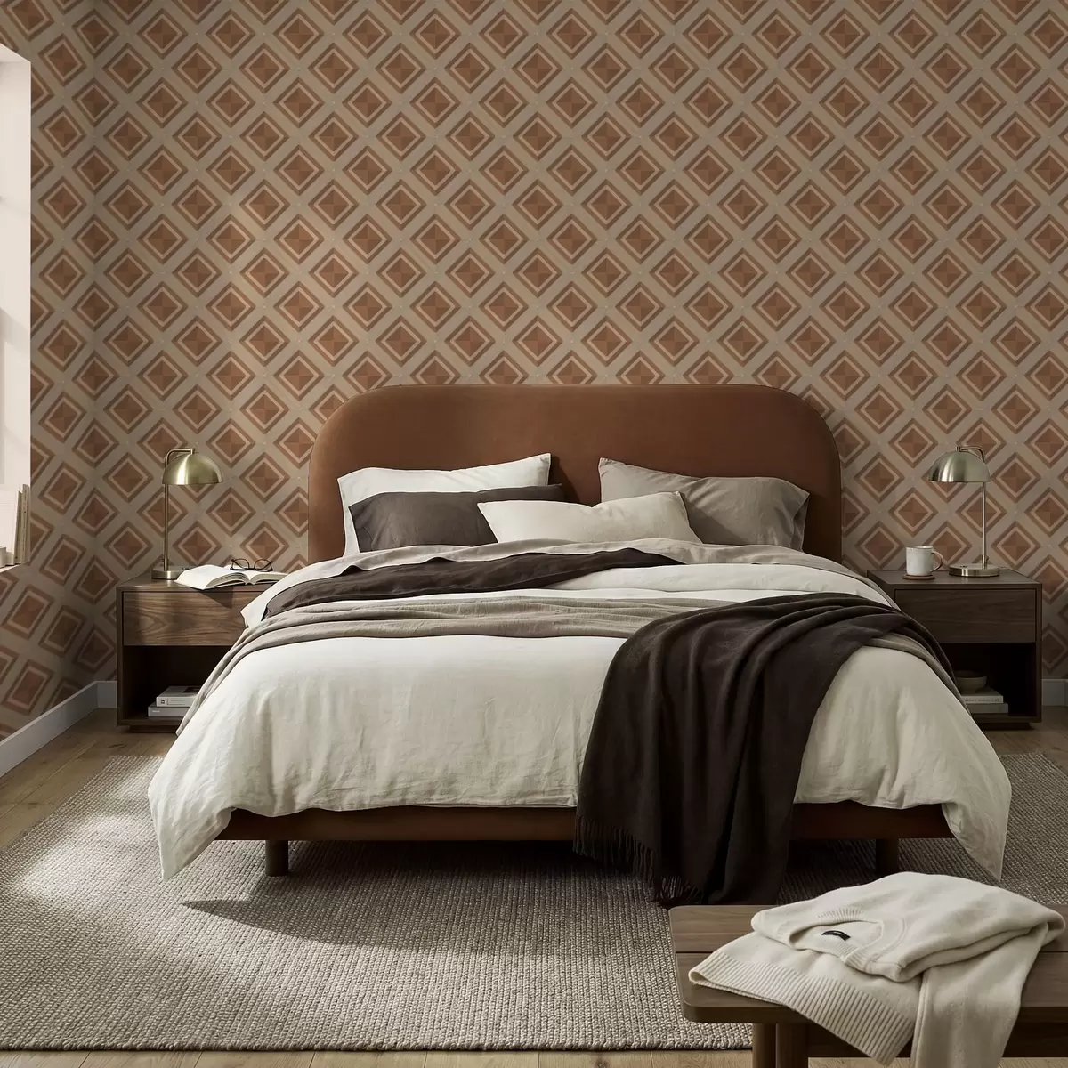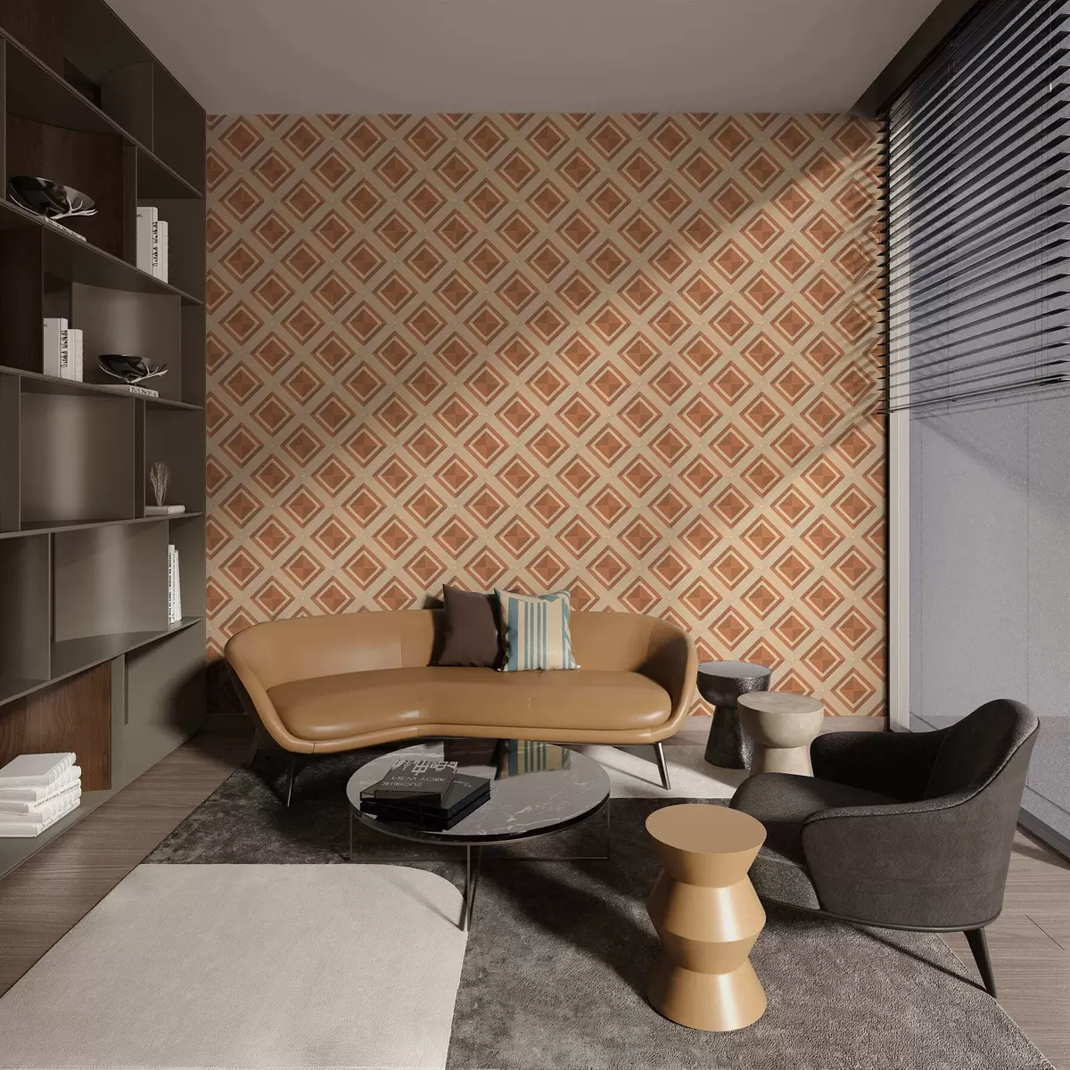 Papel pintado Diseño geométrico de rombos en tonos terracota. Nr. a01128