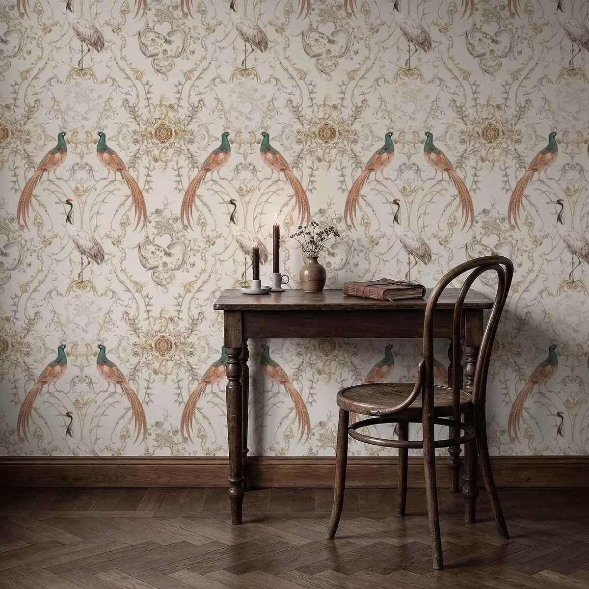 Papel pintado Diseño ornamental con pájaros y motivos Nr. a01156