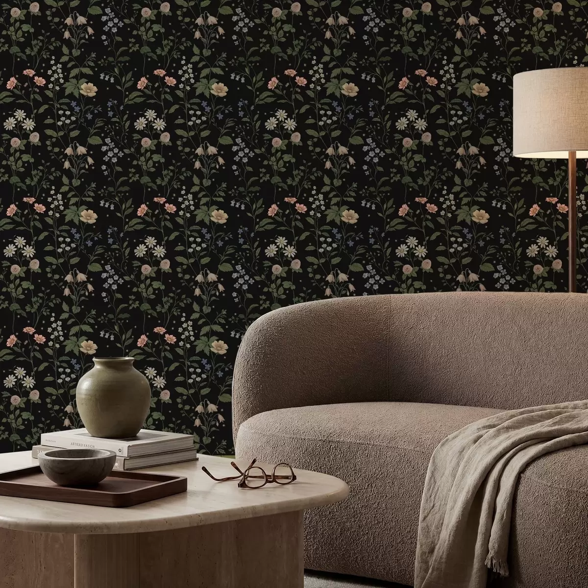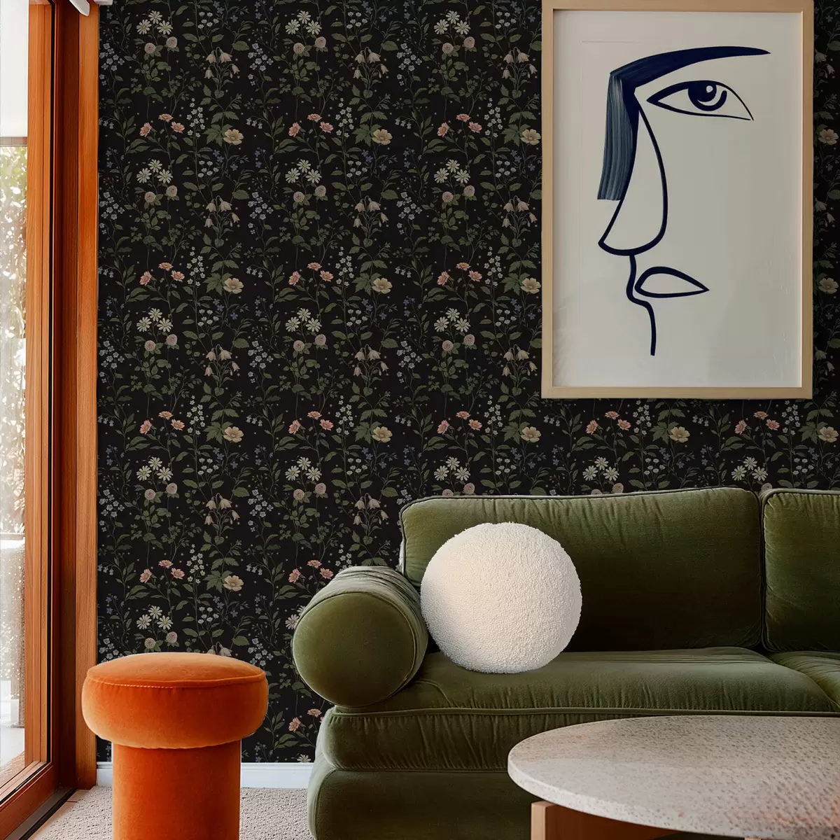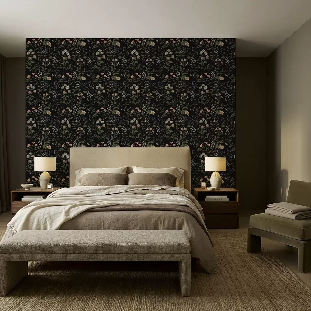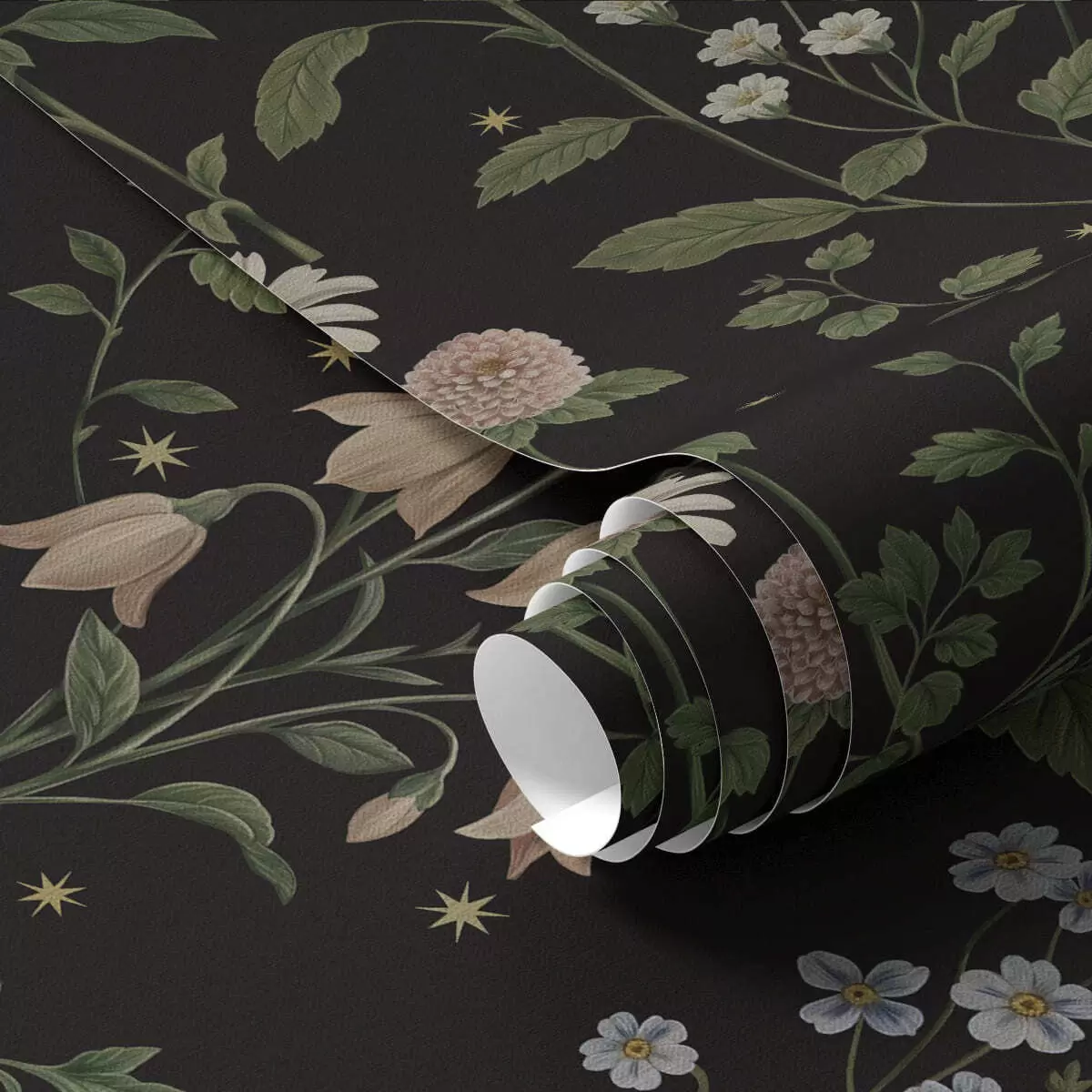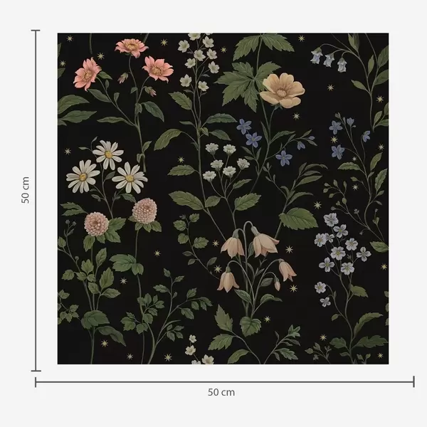 Papel pintado Diseño floral sobre fondo negro con estrellas Nr. a01160