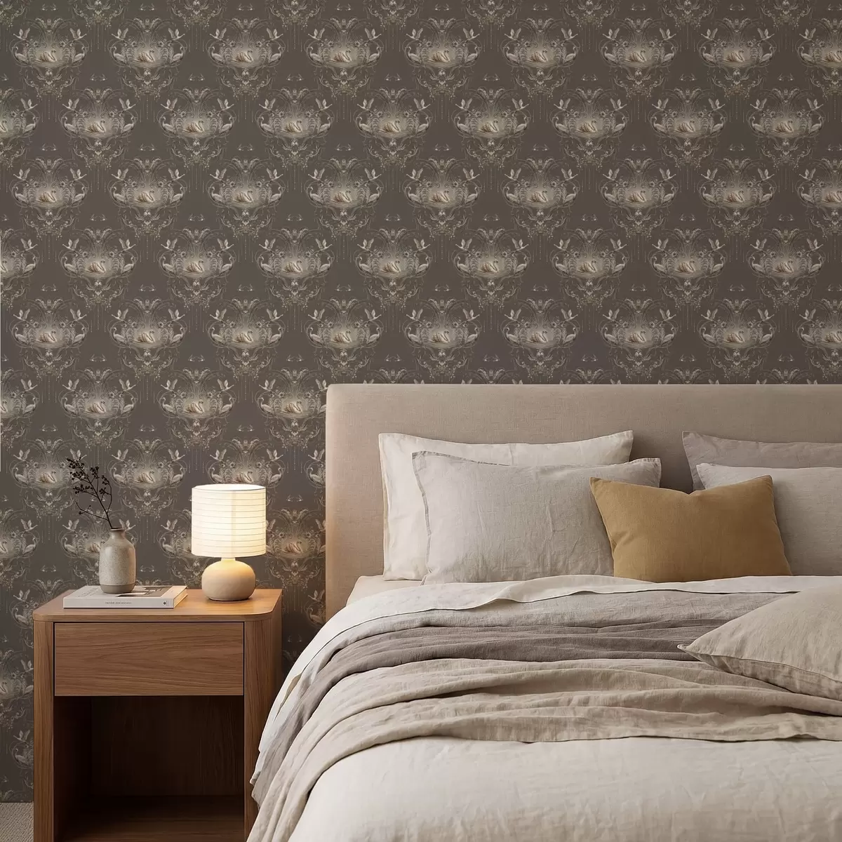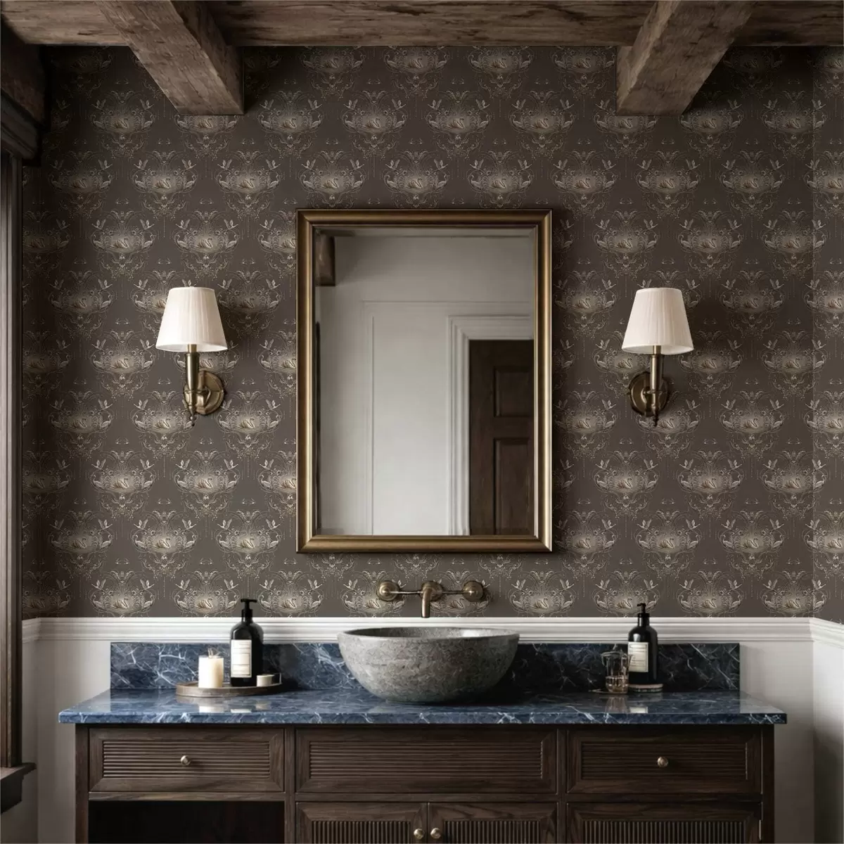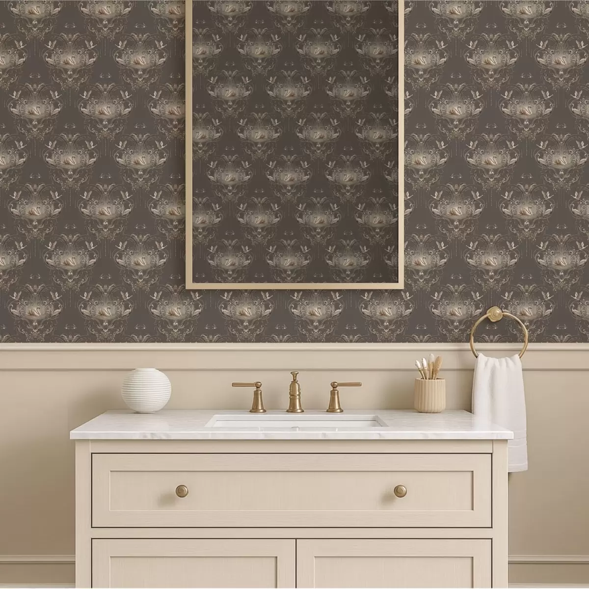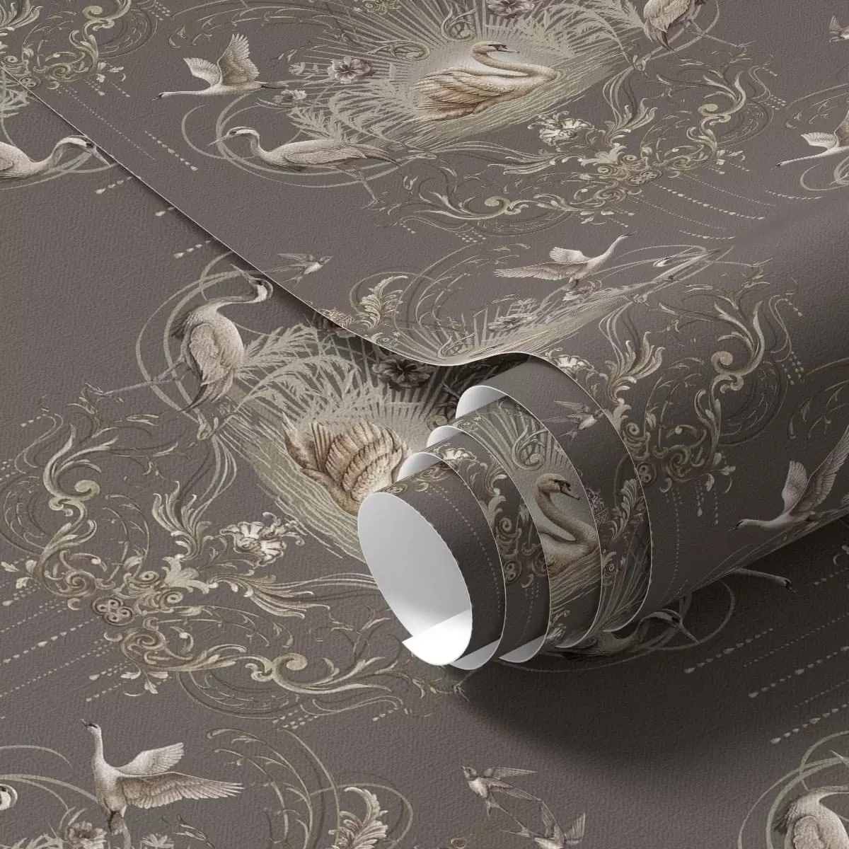 Papel pintado Adorno con cisnes y pájaros de estilo clásico Nr. a01161