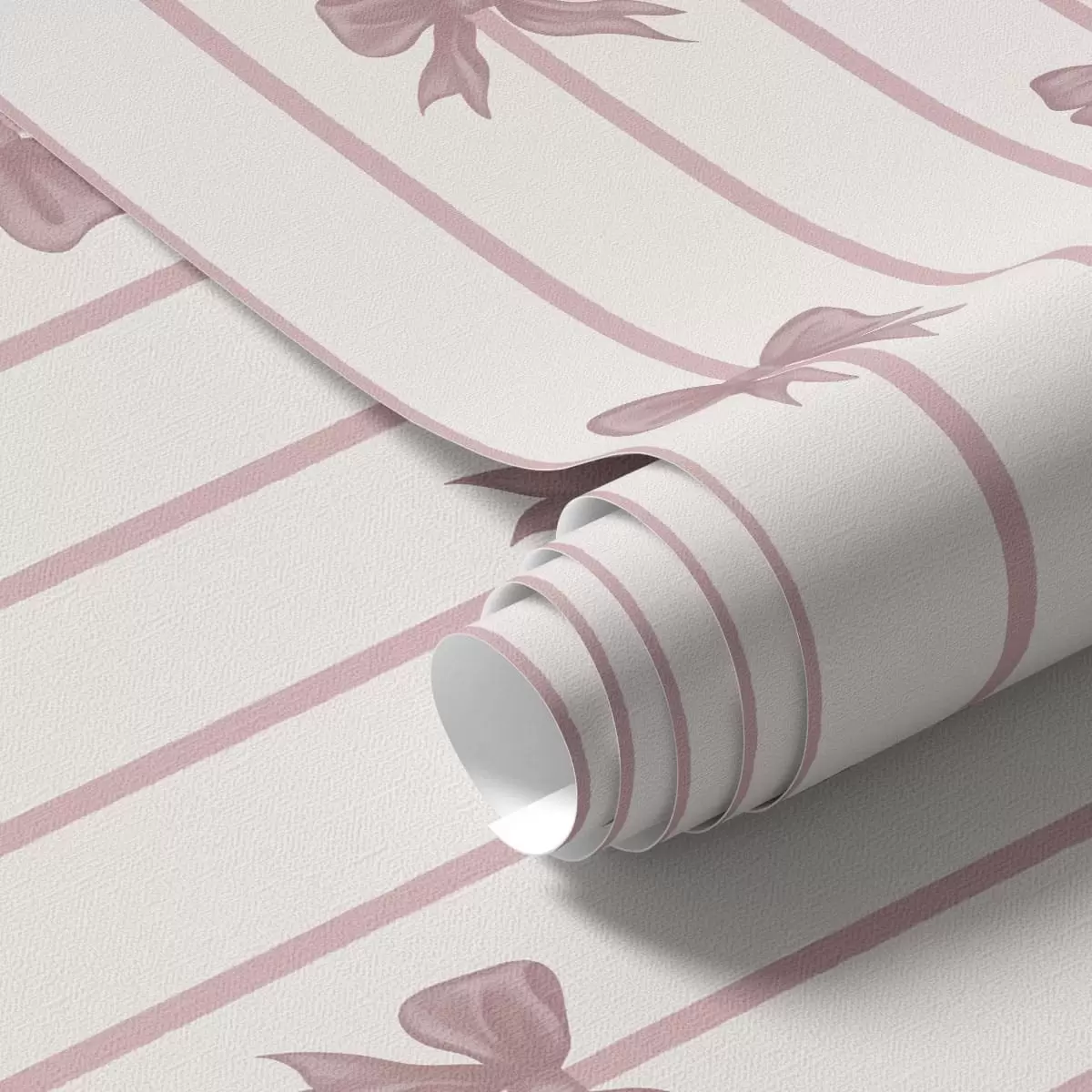 Papel pintado Lazos rosas sobre rayas verticales sobre un fondo claro Nr. a01162