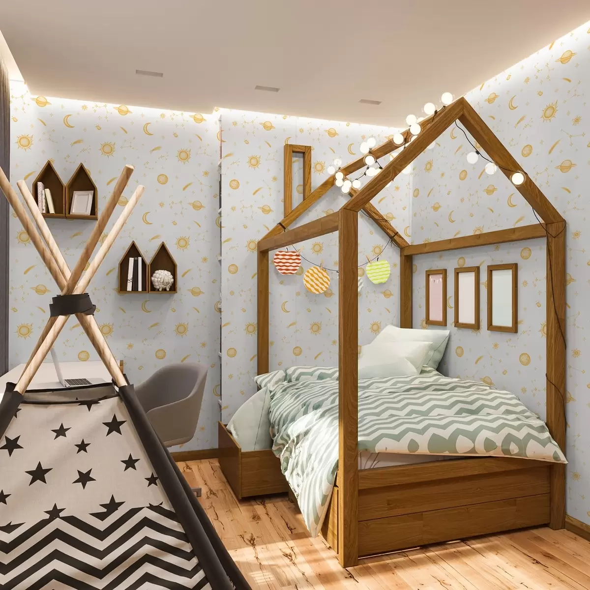 Papel pintado Cuerpos celestes y estrellas en estilo suave Nr. a01163