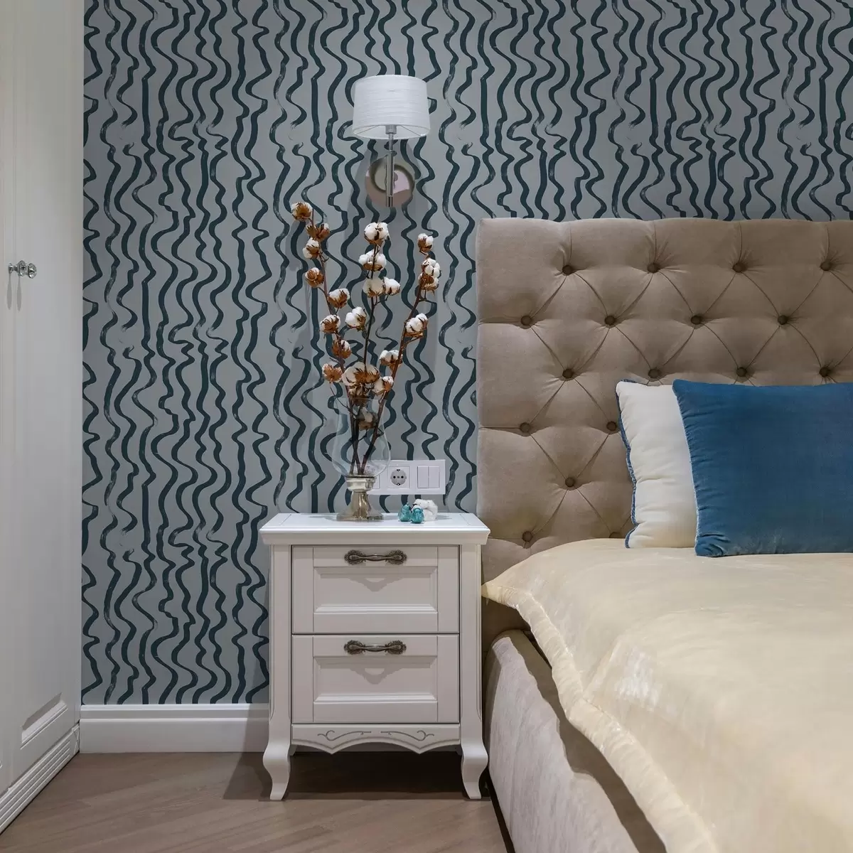 Papel pintado Líneas onduladas oscuras sobre fondo azul Nr. a01168v1