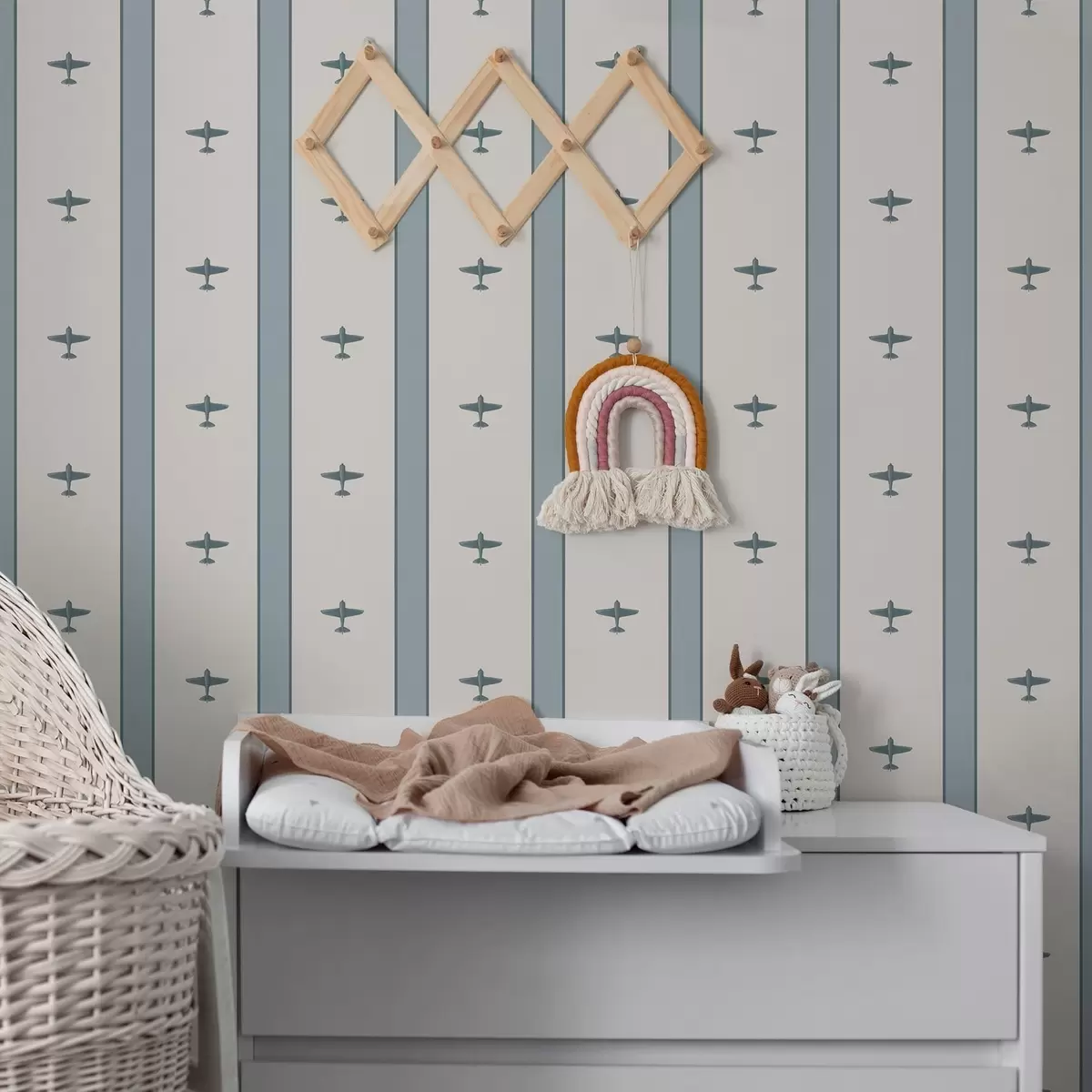 Papel pintado Aviones pequeños a rayas sobre fondo azul Nr. a01171