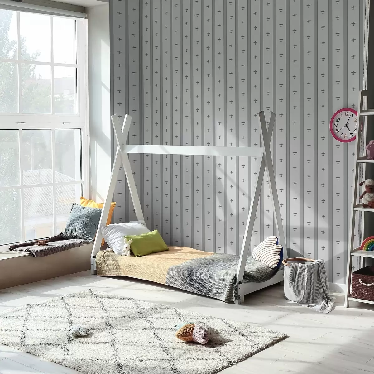 Papel pintado Aviones pequeños a rayas sobre fondo gris Nr. a01171v1