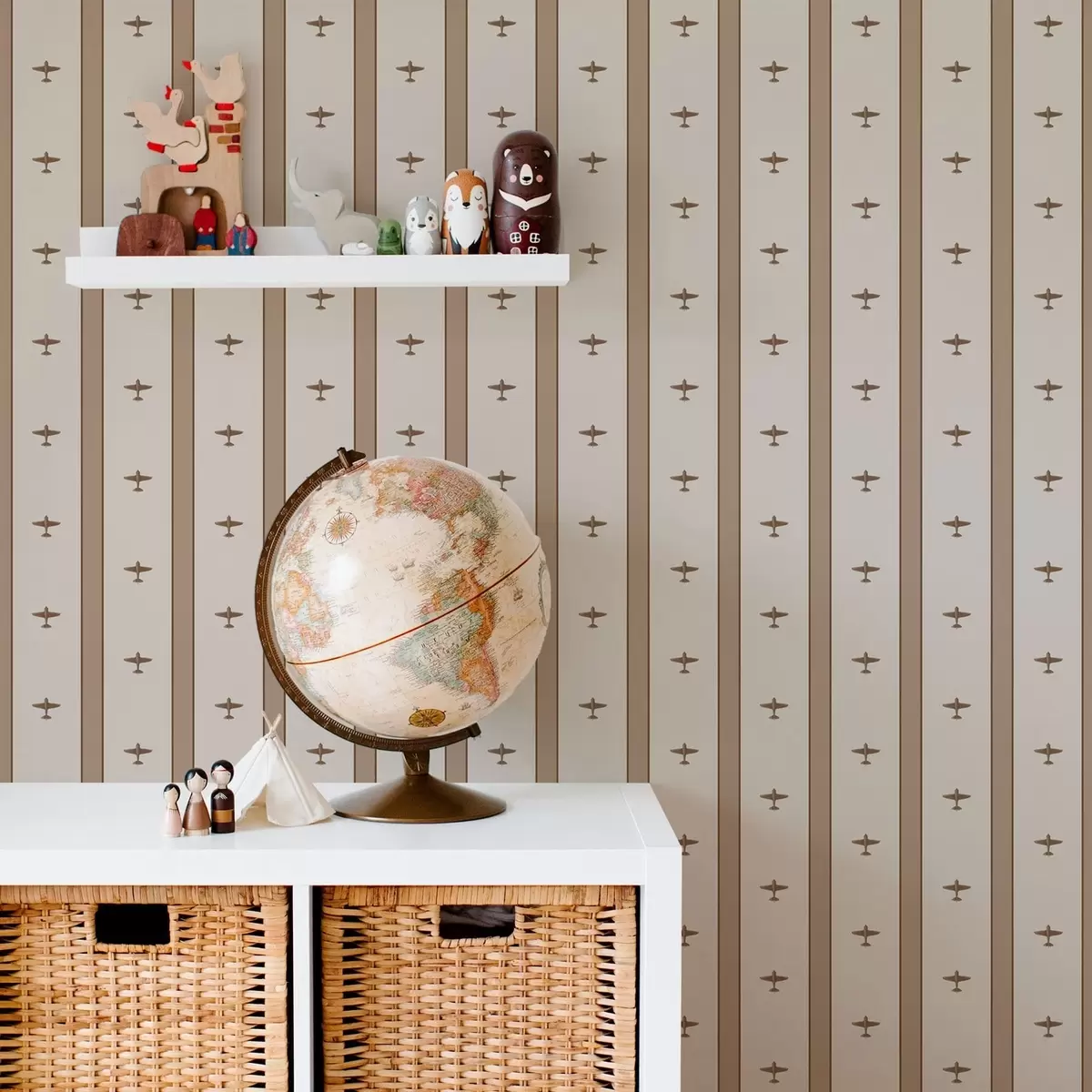 Papel pintado Aviones pequeños a rayas sobre fondo marrón Nr. a01171v2