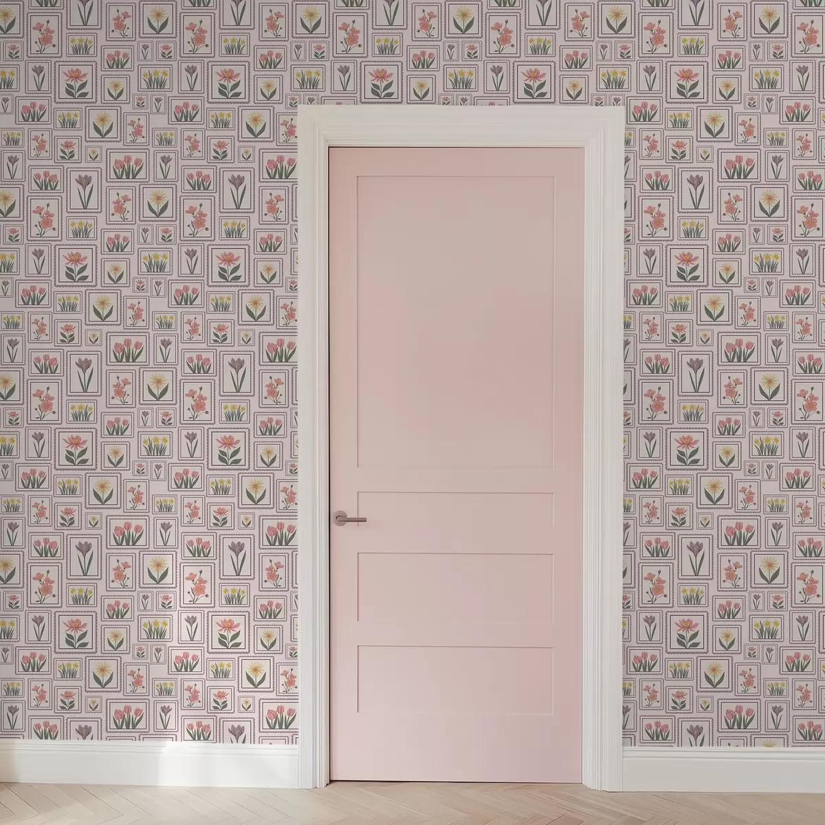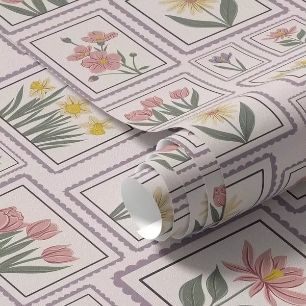 Papel pintado Ilustraciones florales enmarcadas en tonos lila Nr. a01173v2