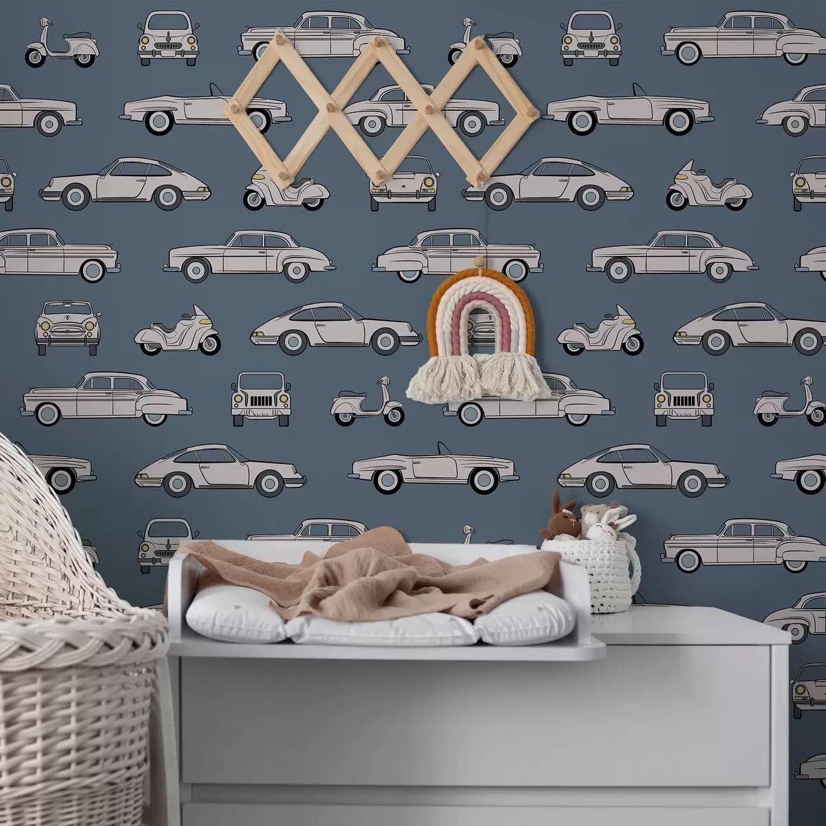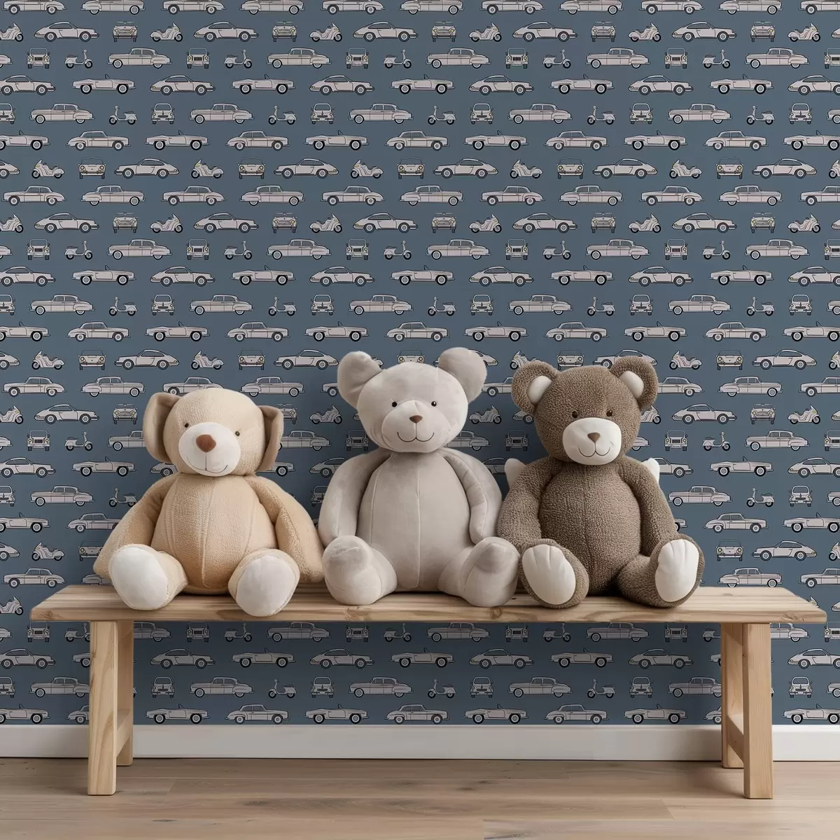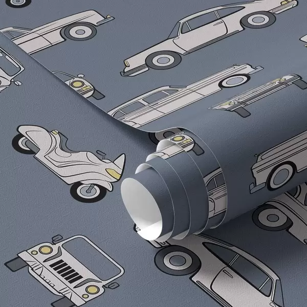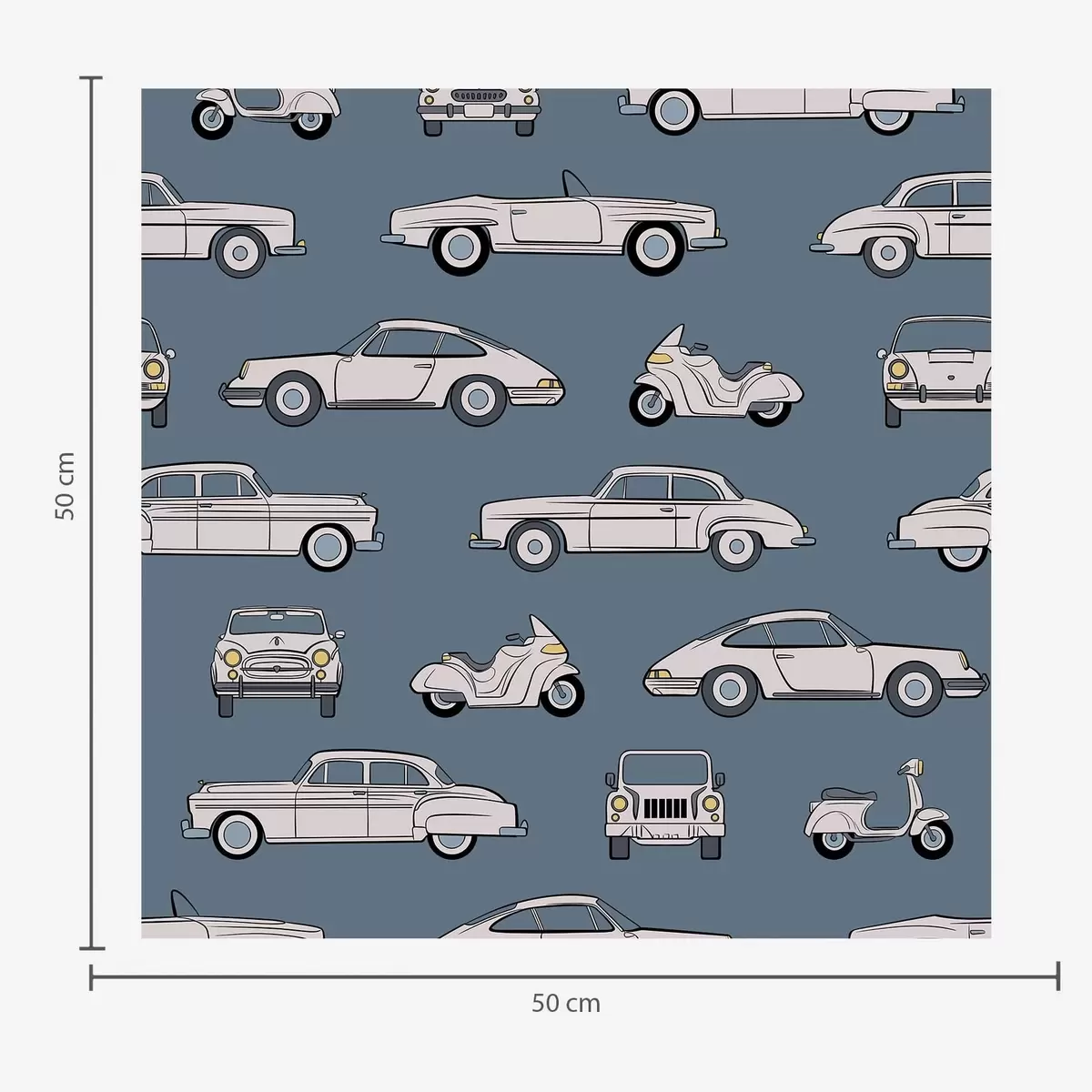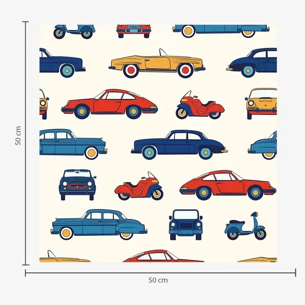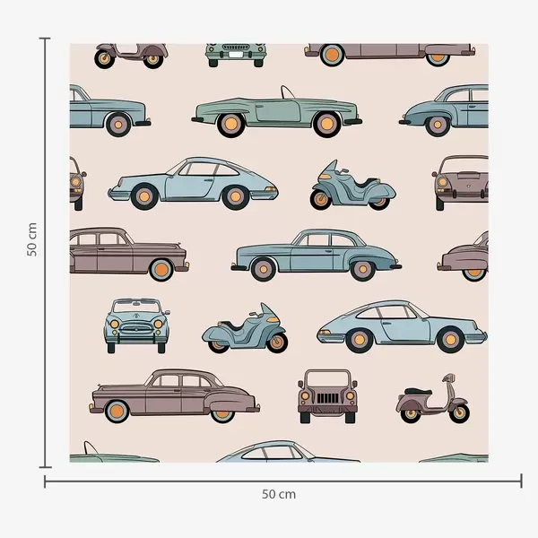 Papel pintado Coches y motos retro sobre fondo azul Nr. a01178