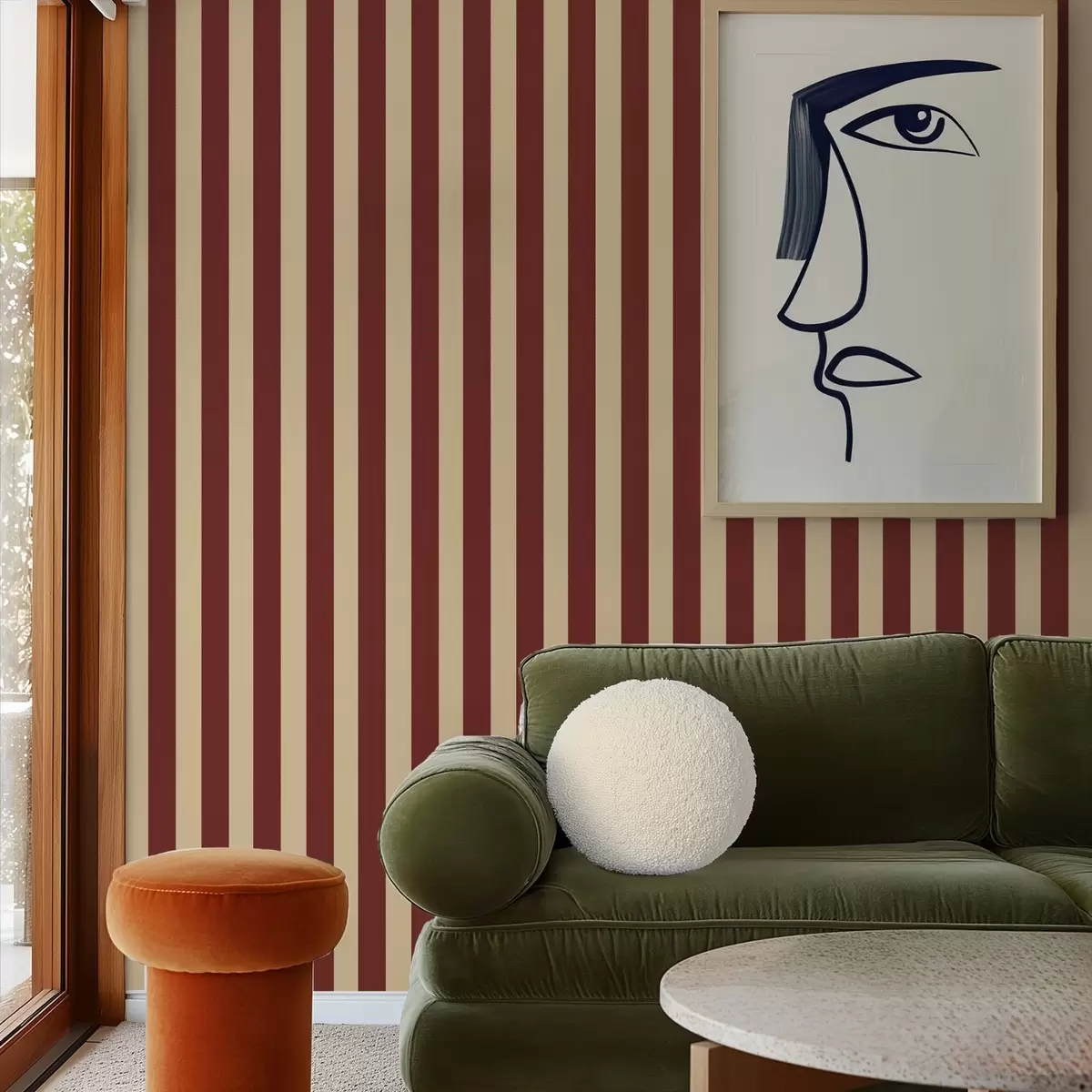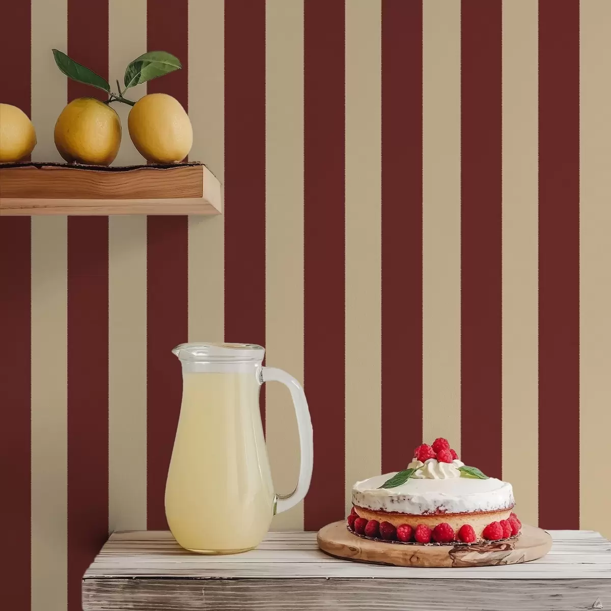 Papel pintado Rayas verticales rojas y beige Nr. a01179