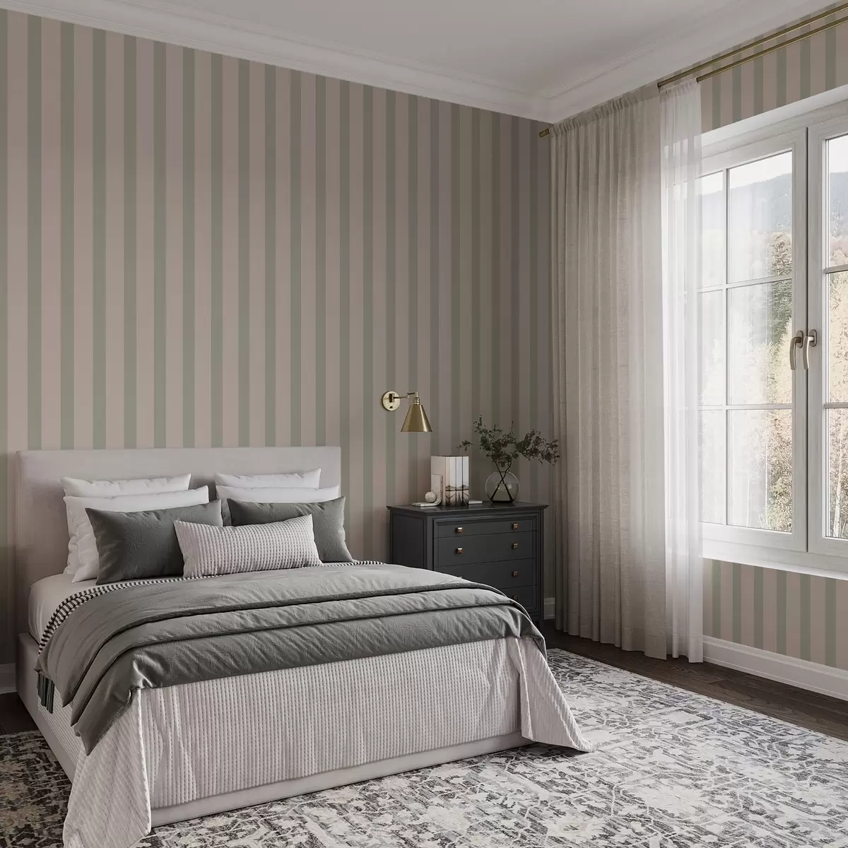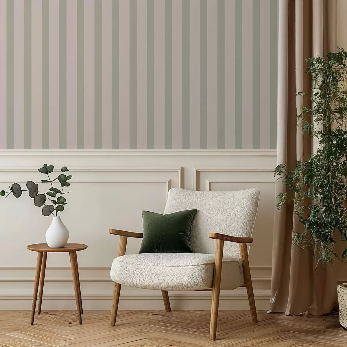 Papel pintado Rayas verticales verdes y beige Nr. a01180