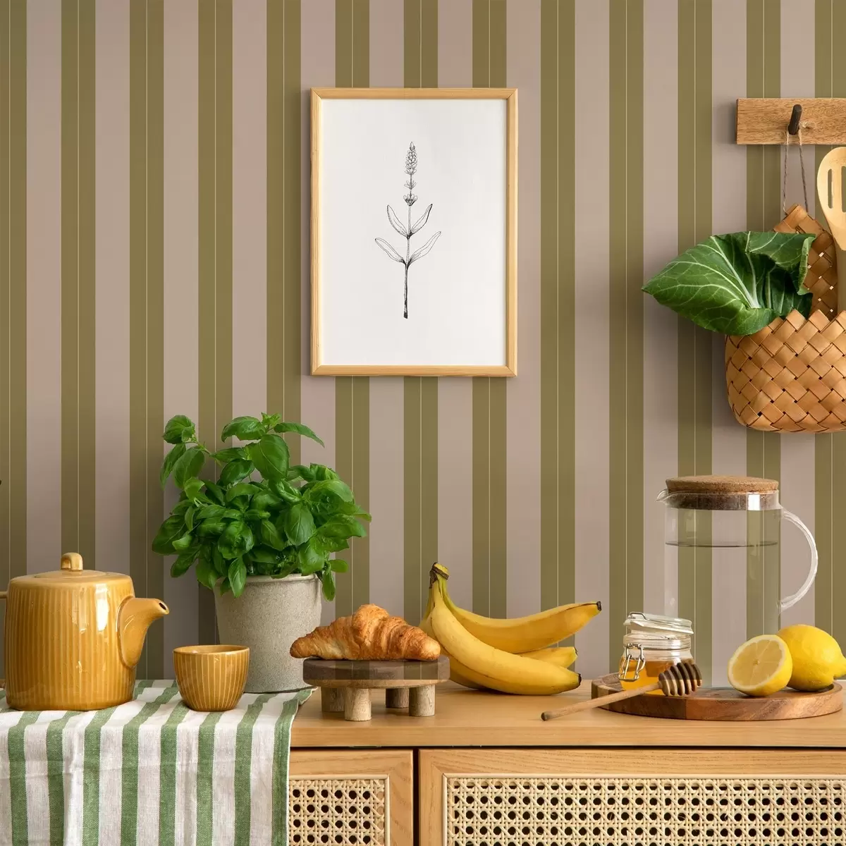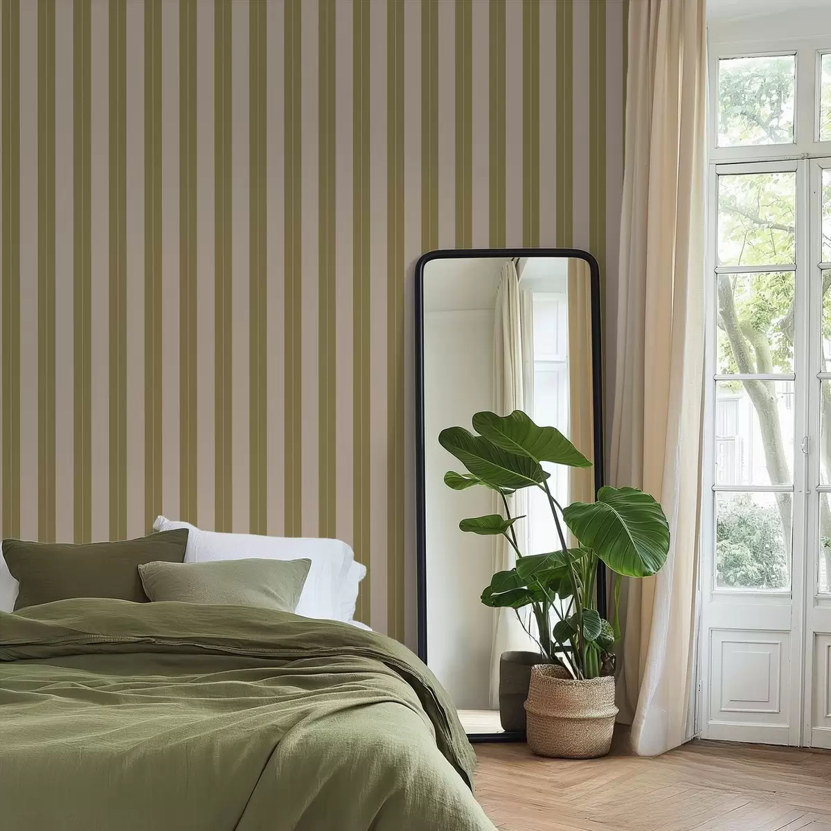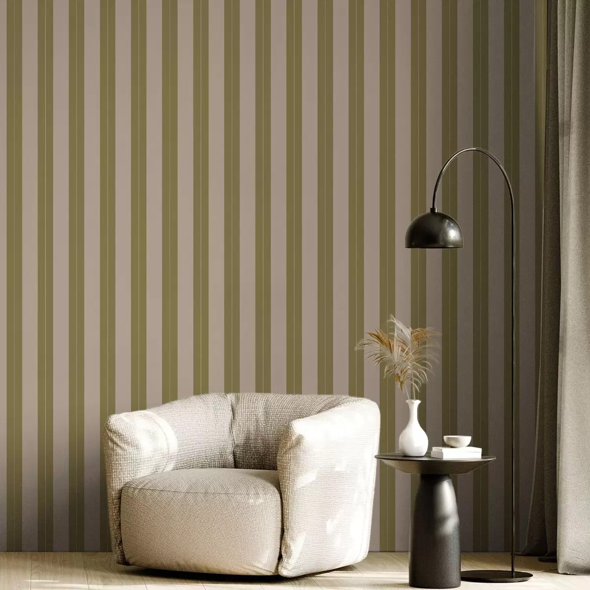 Papel pintado Rayas verticales en color verde oliva y beige Nr. a01181v2
