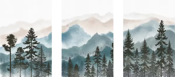 Poster Montañas serenas y siluetas de árboles Nr d00244