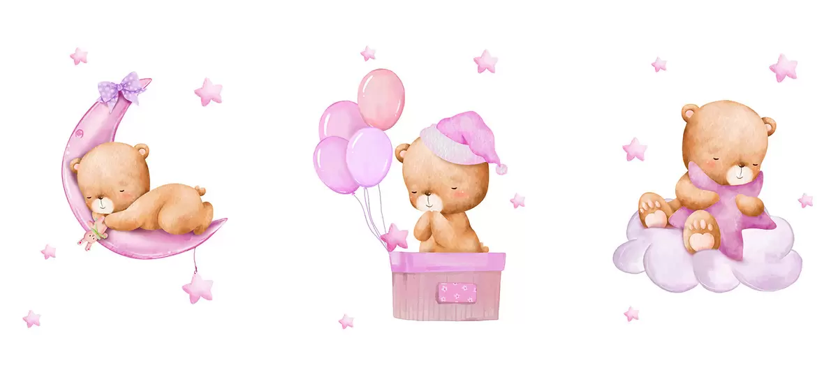 Poster Ositos de peluche en escenas de ensueño en tonos pastel d00296v2