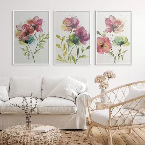 Poster Delicadas flores pintadas con acuarela y salpicaduras de pintura. Nr d00340
