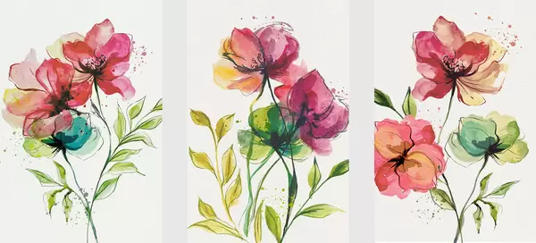 Poster Delicadas flores pintadas con acuarela y salpicaduras de pintura. Nr d00340