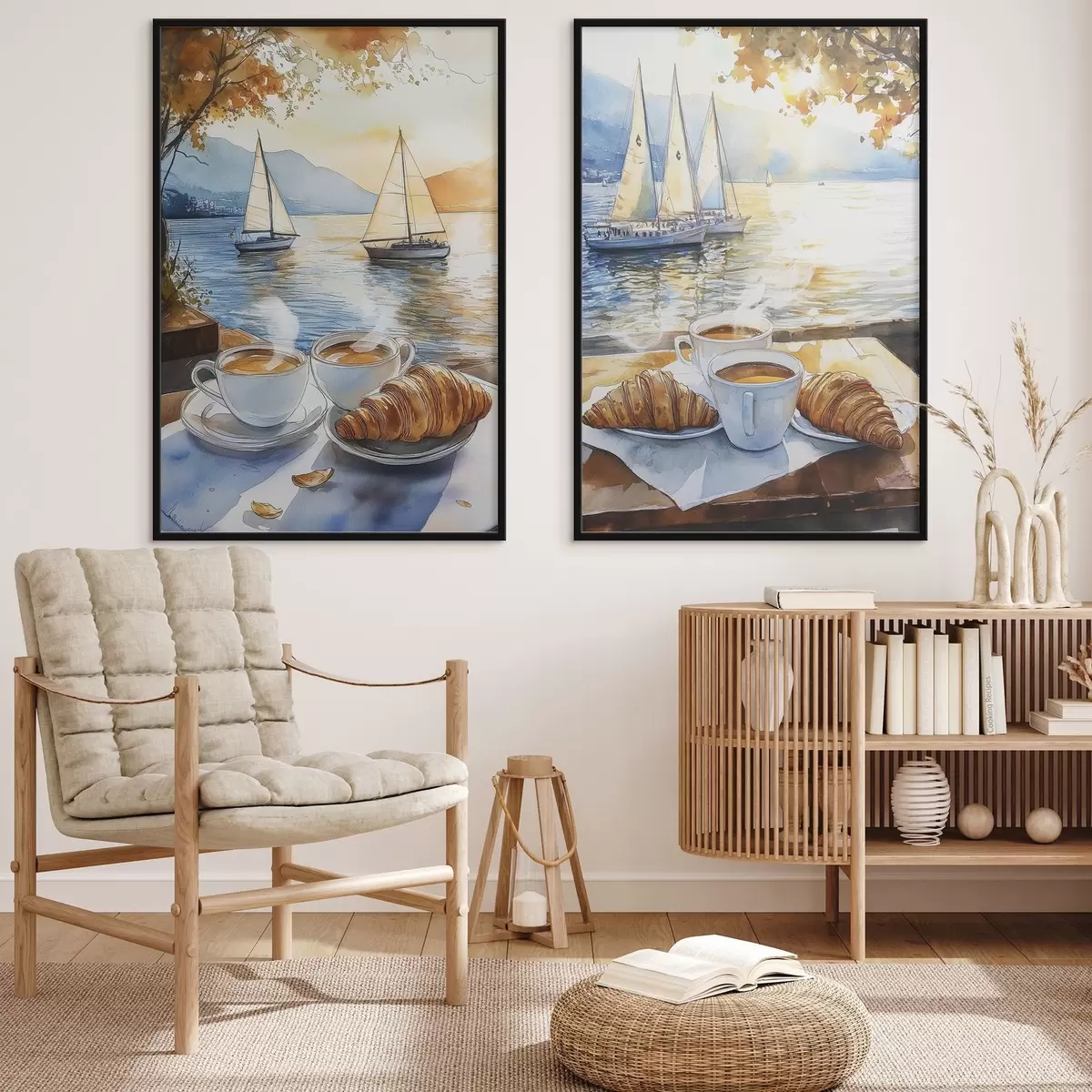 Poster Puesta de sol en el lago con ups de café, veleros, naturaleza, viajes Nr d00407